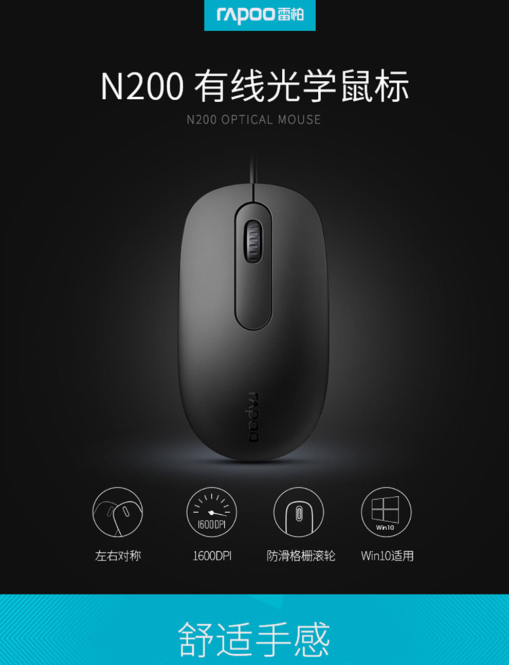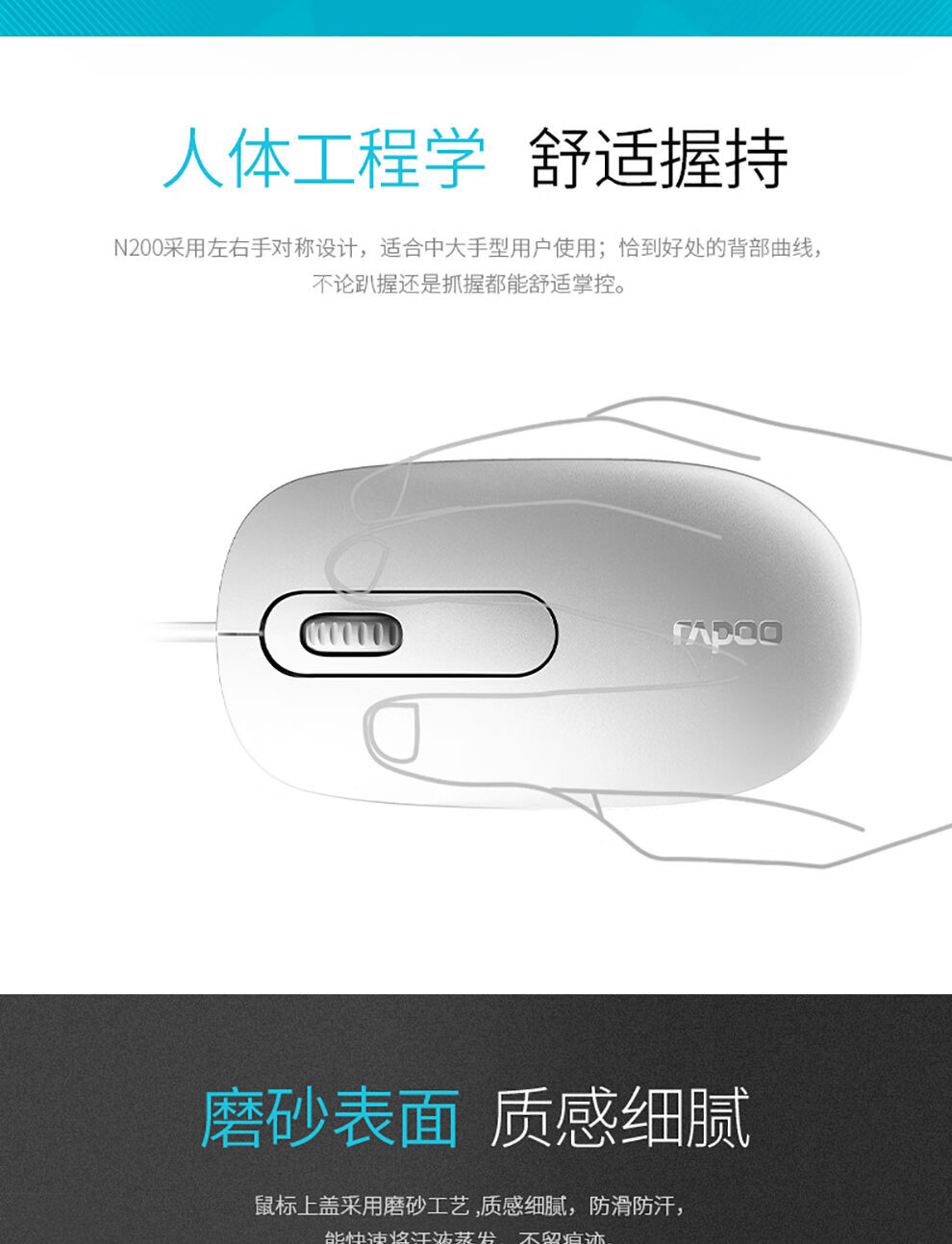 라포 N200 유선 USB 마우스 사무용 대칭형 마우스 노트북용