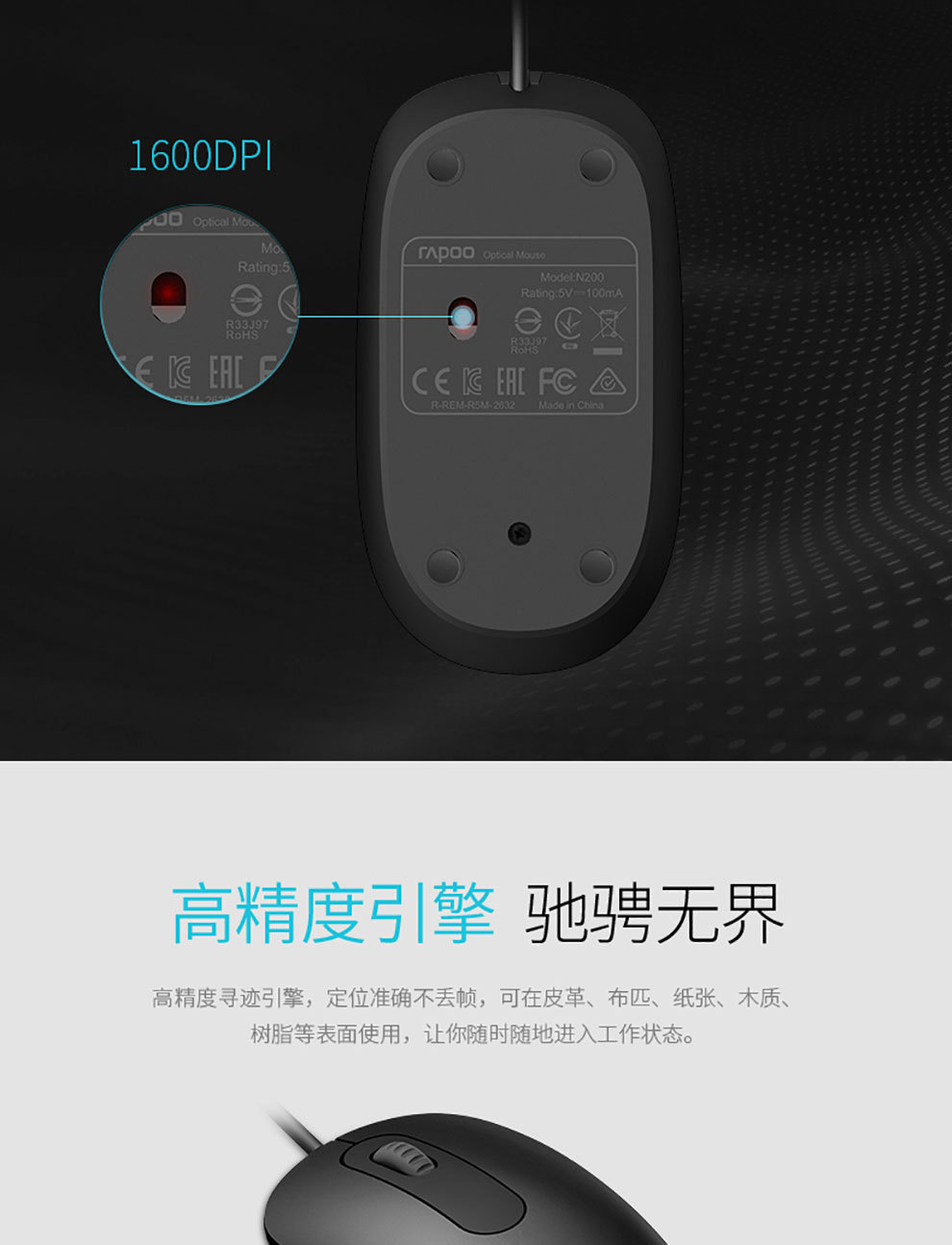 라포 N200 유선 USB 마우스 사무용 대칭형 마우스 노트북용스토어 가기