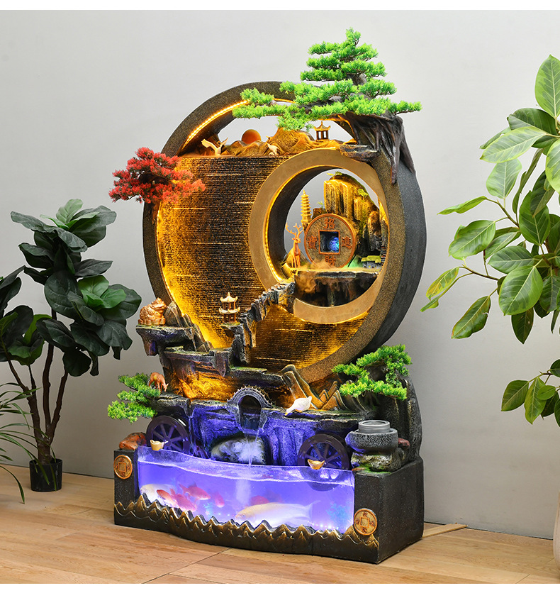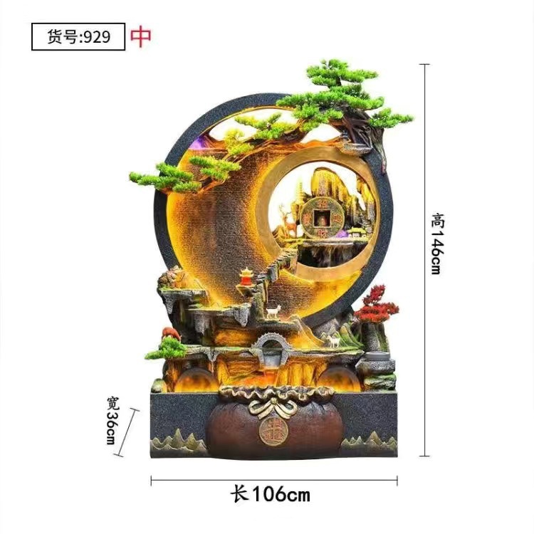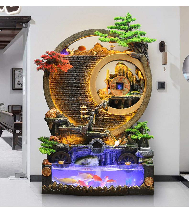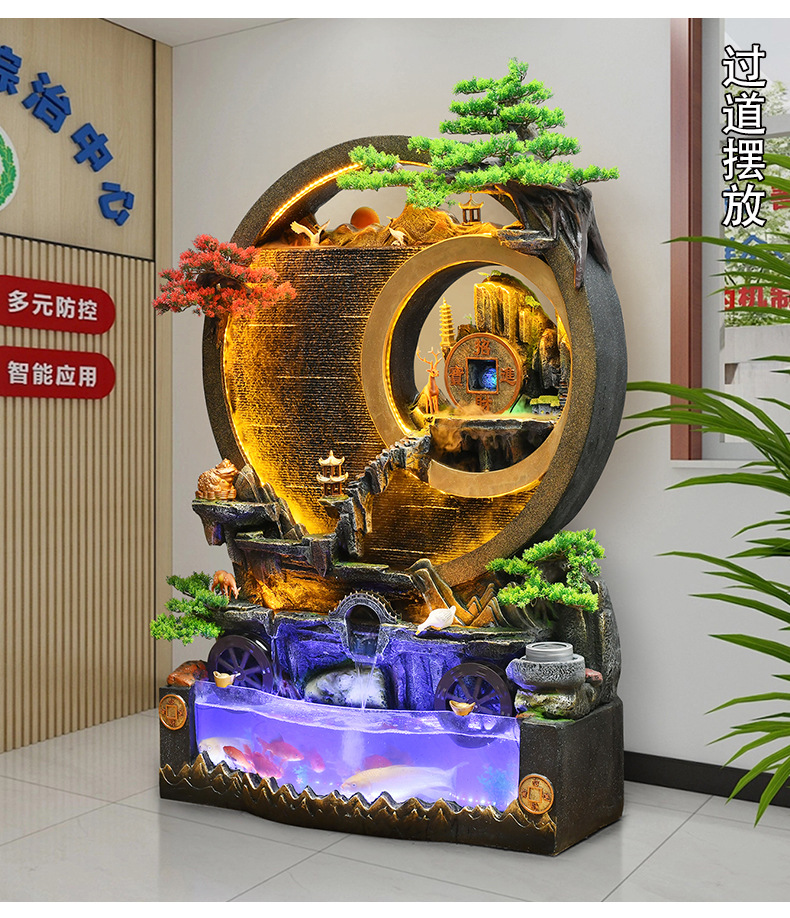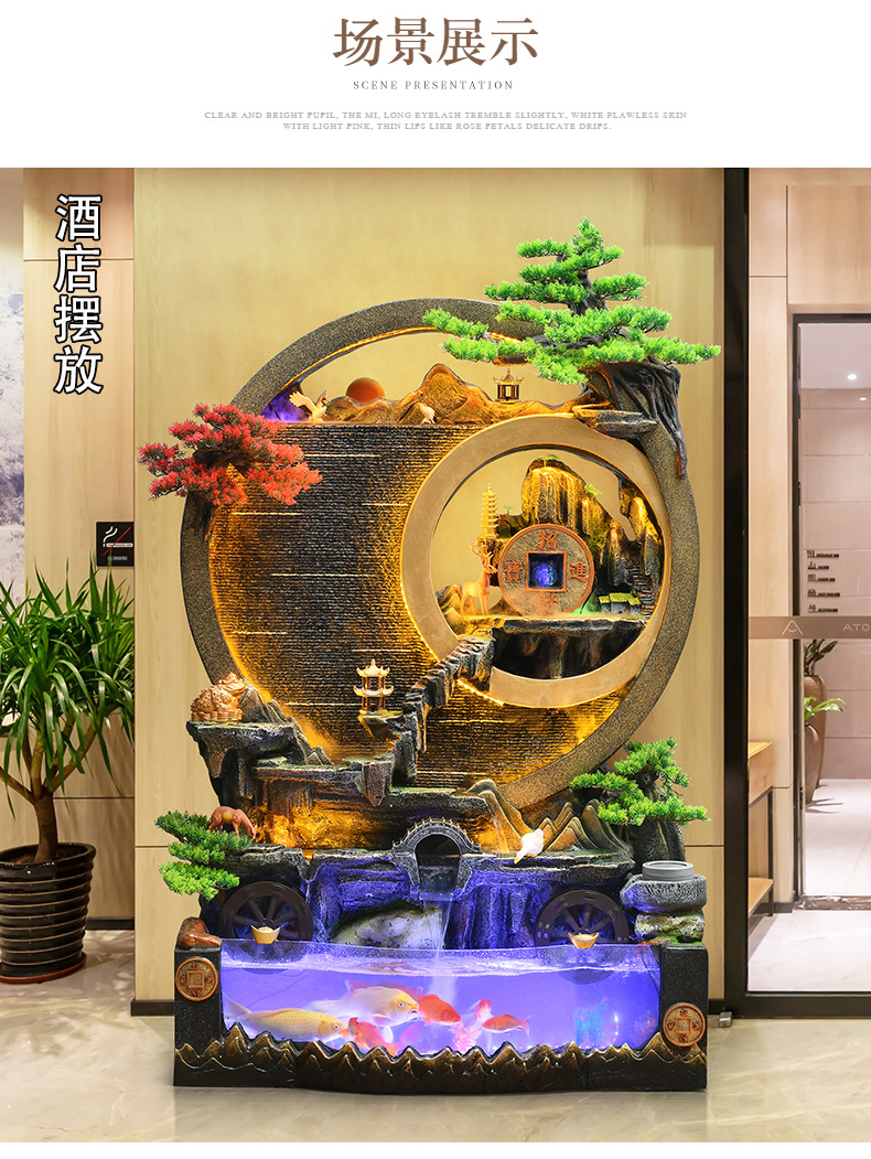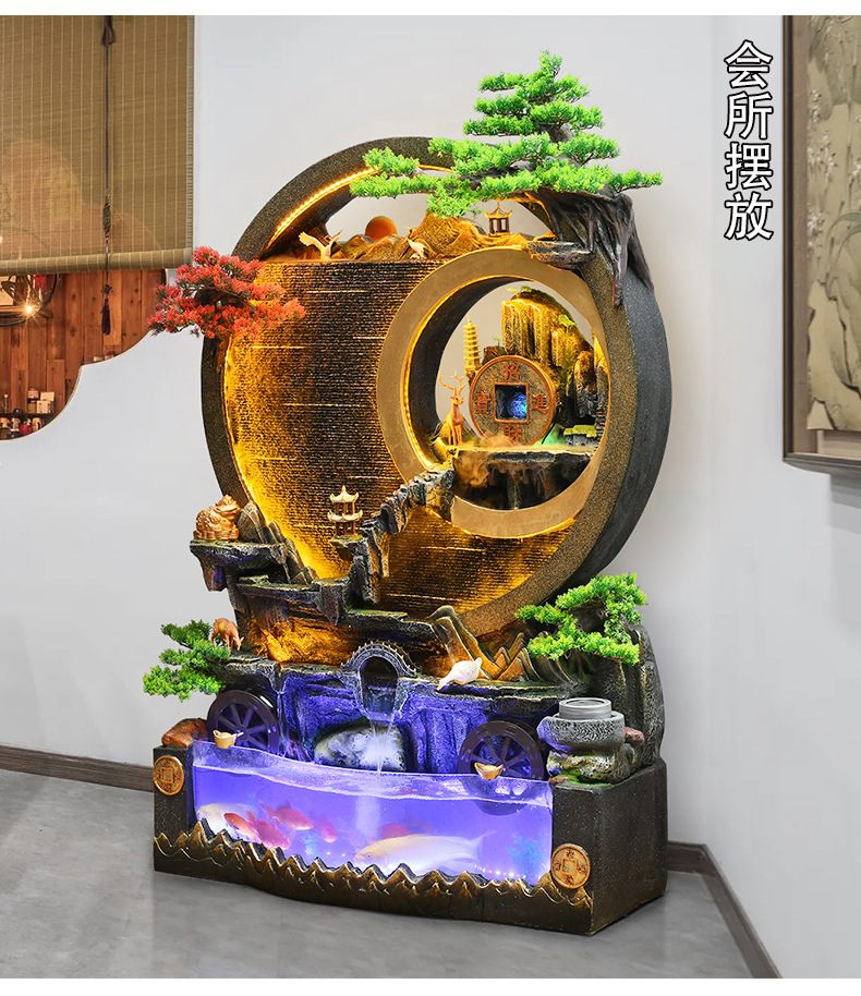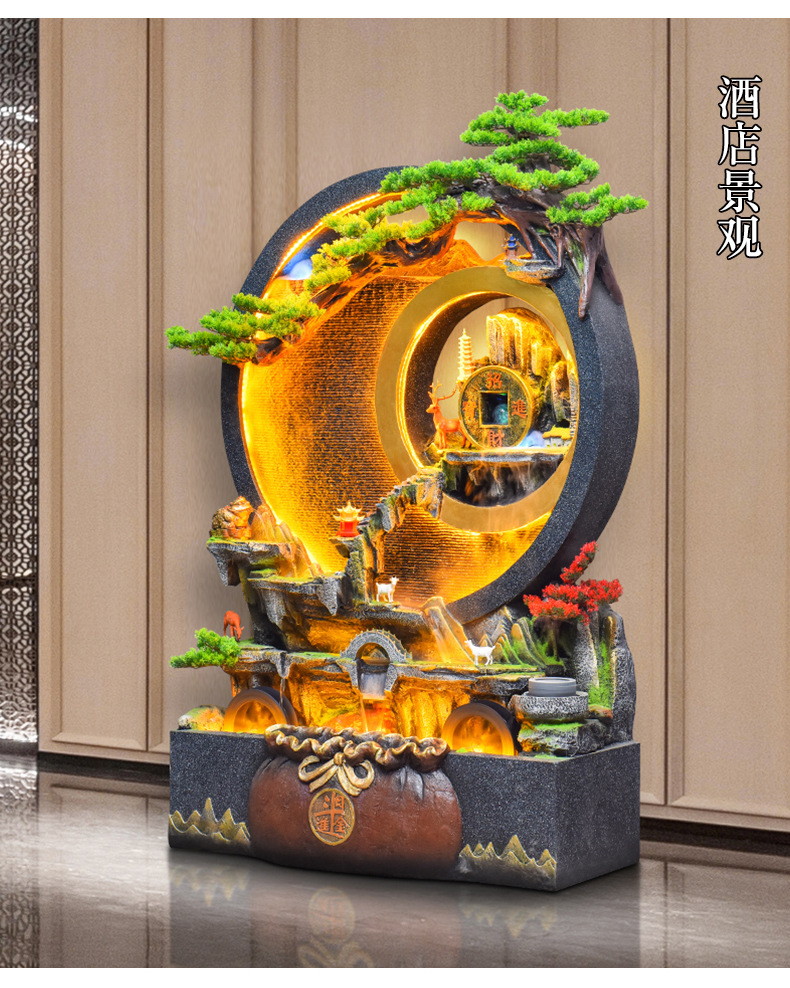 대형 물 커튼 벽 바위 흐르는 물 분수 장식 거실 사무실 안뜰 빌라 운세 만들기 풍수 휠 장식