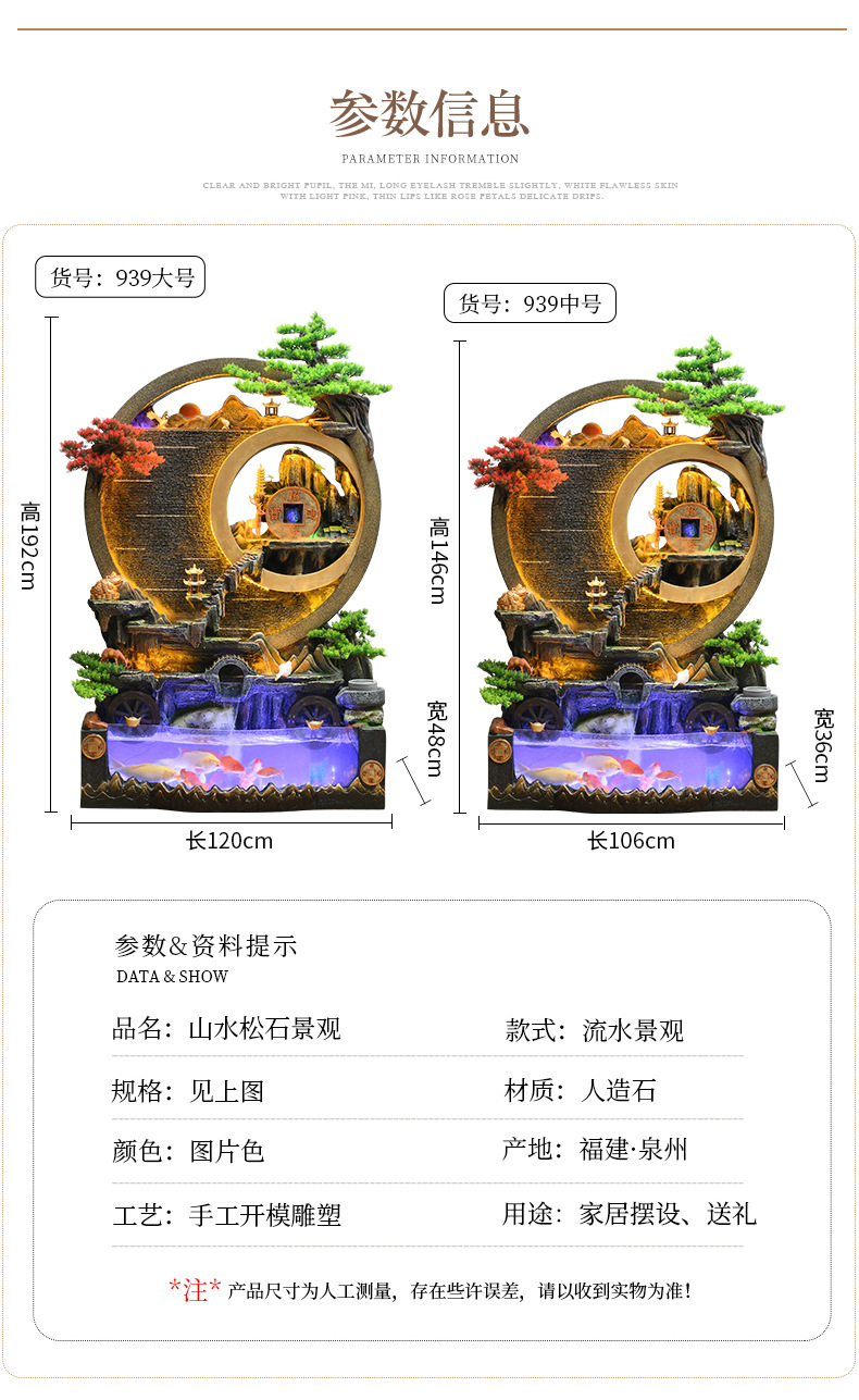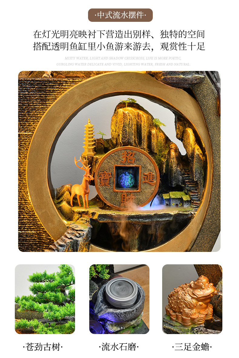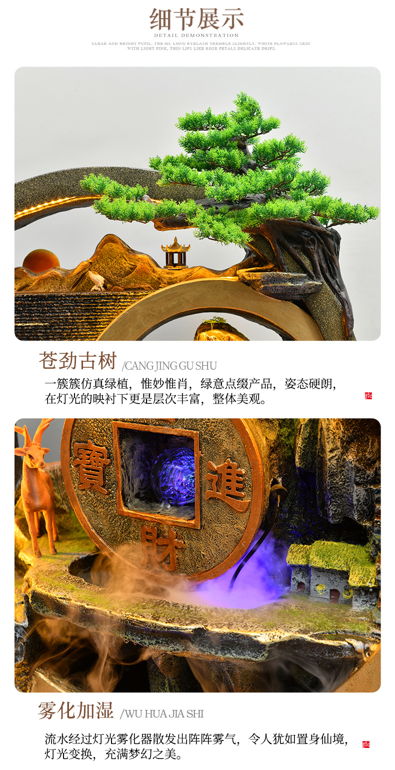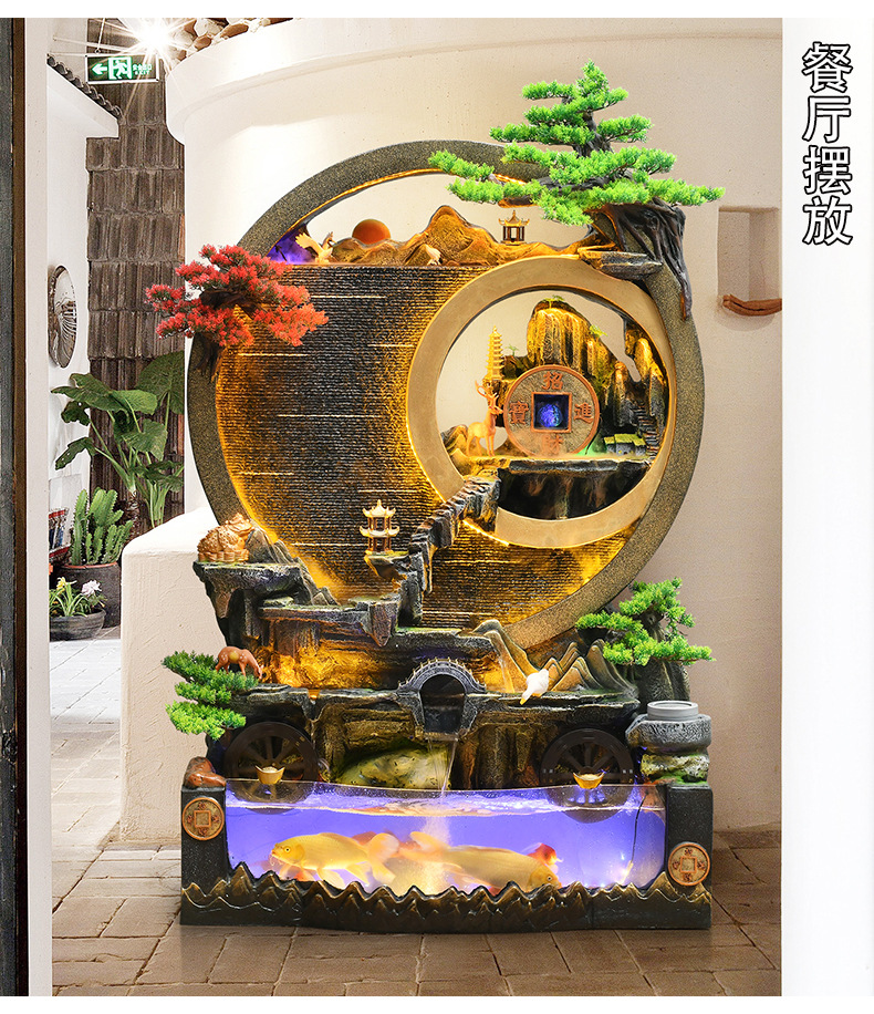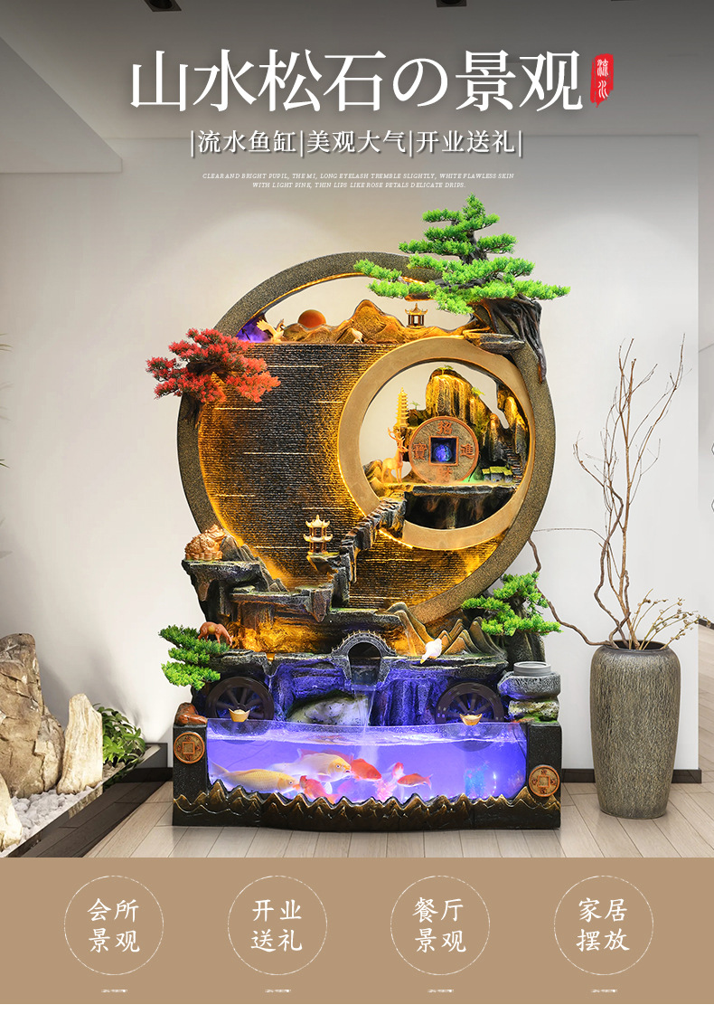 대형 물 커튼 벽 바위 흐르는 물 분수 장식 거실 사무실 안뜰 빌라 운세 만들기 풍수 휠 장식