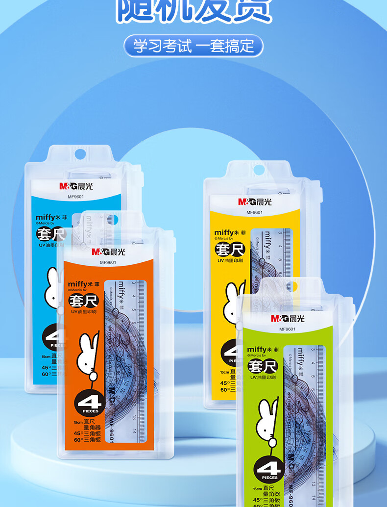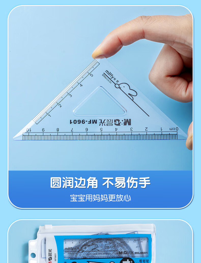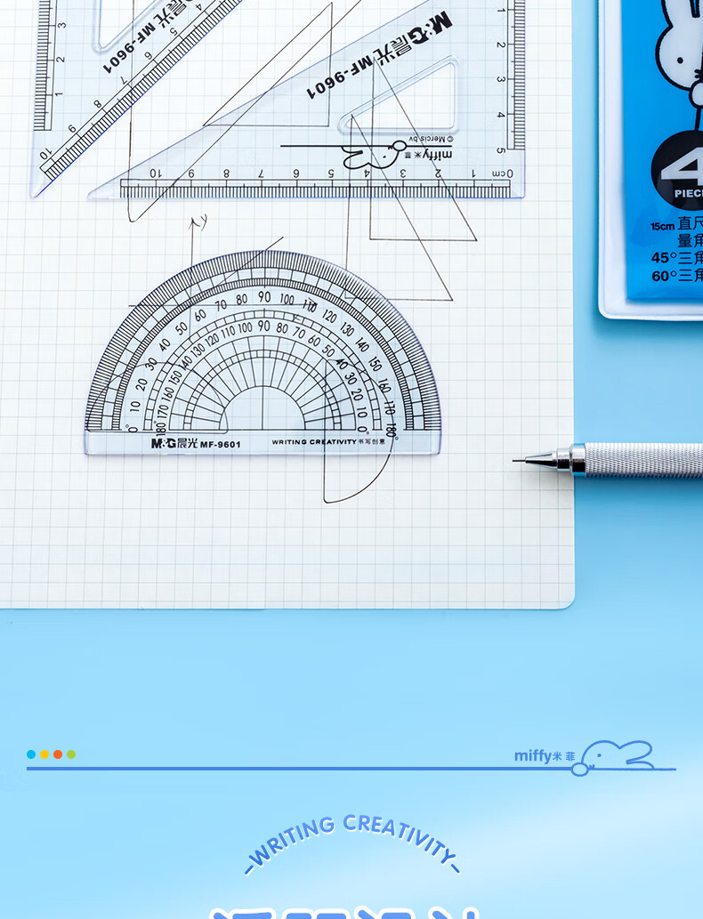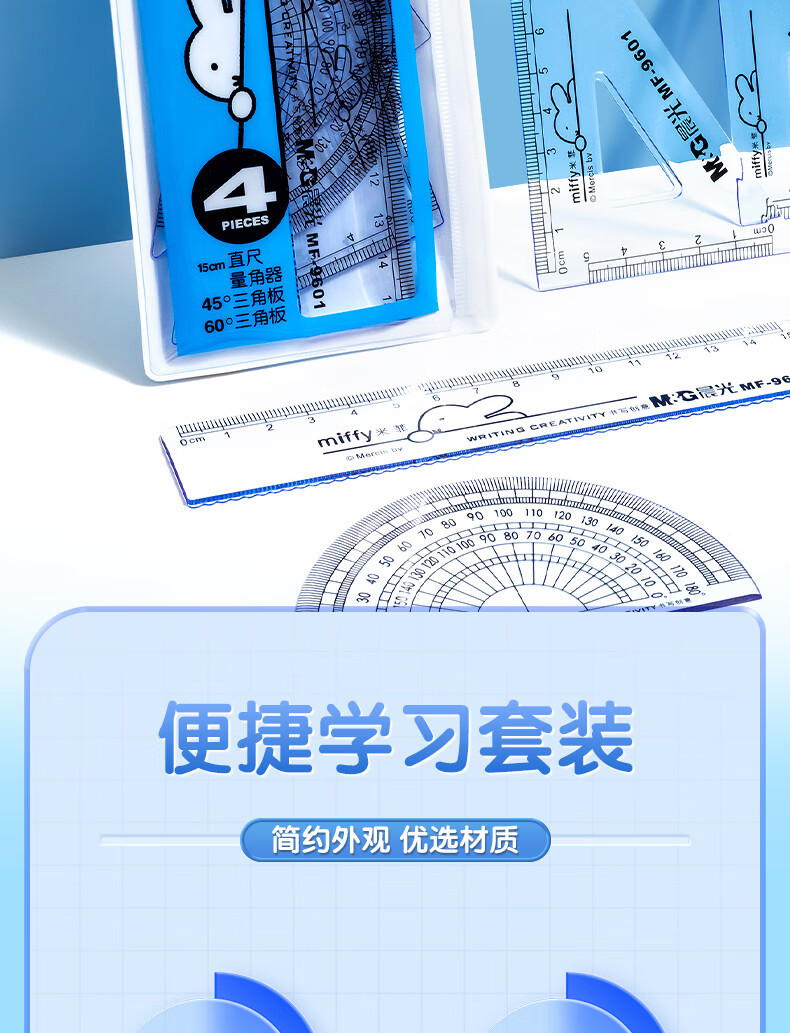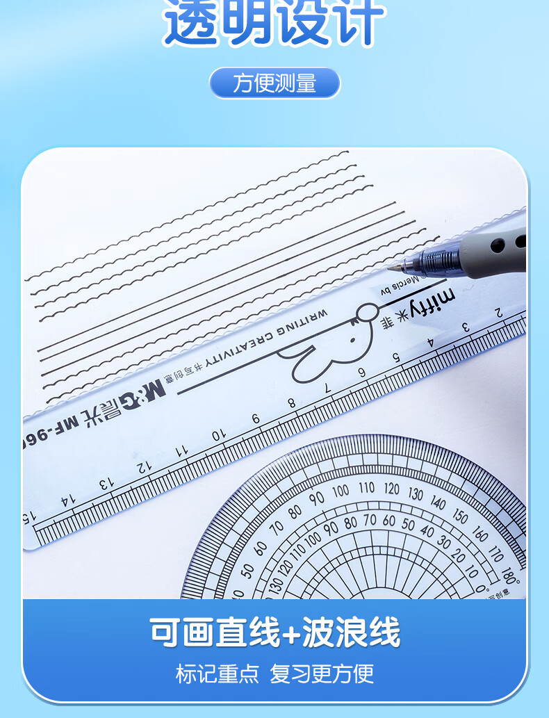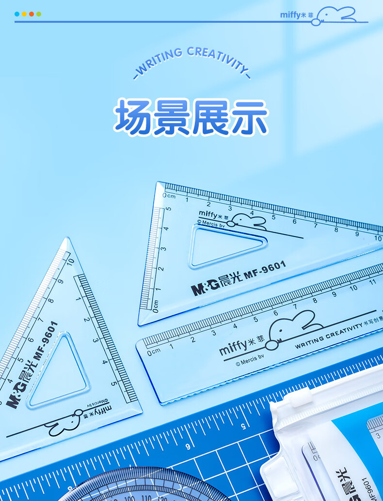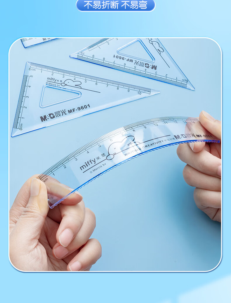 Chenguang Miffy 세트 통치자 삼각형 플레이트 각광기 물결 모양의 선 그리기 측정 도구 눈금자스토어 가기
