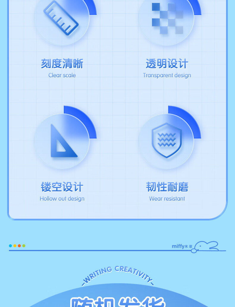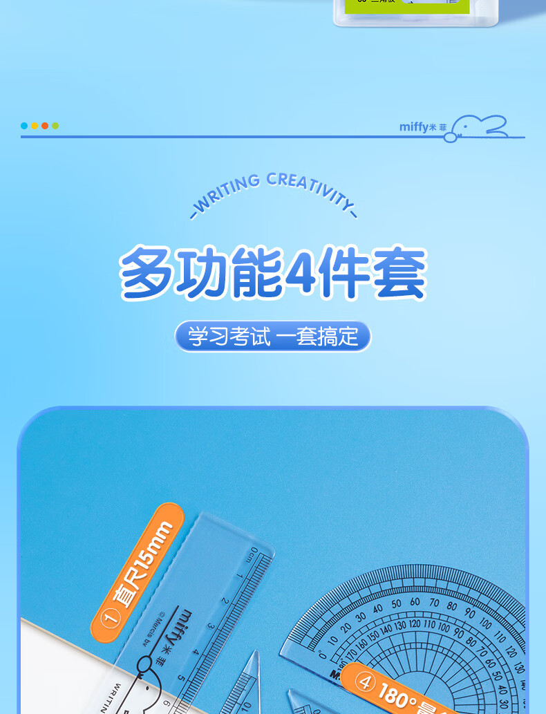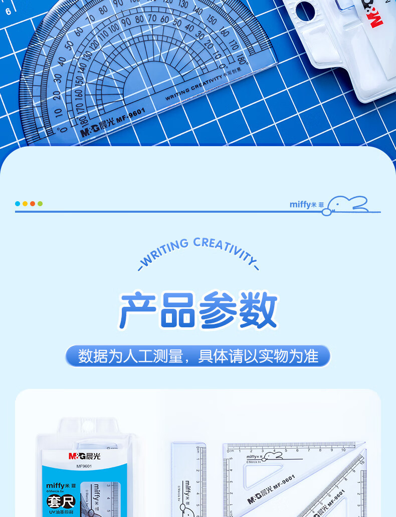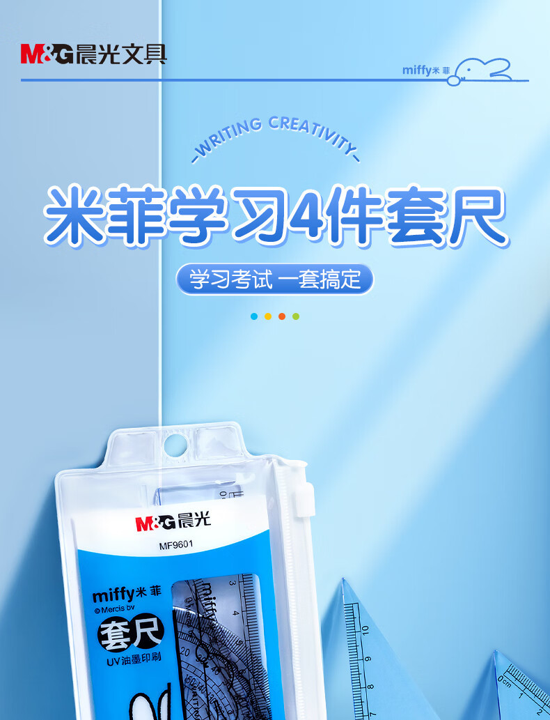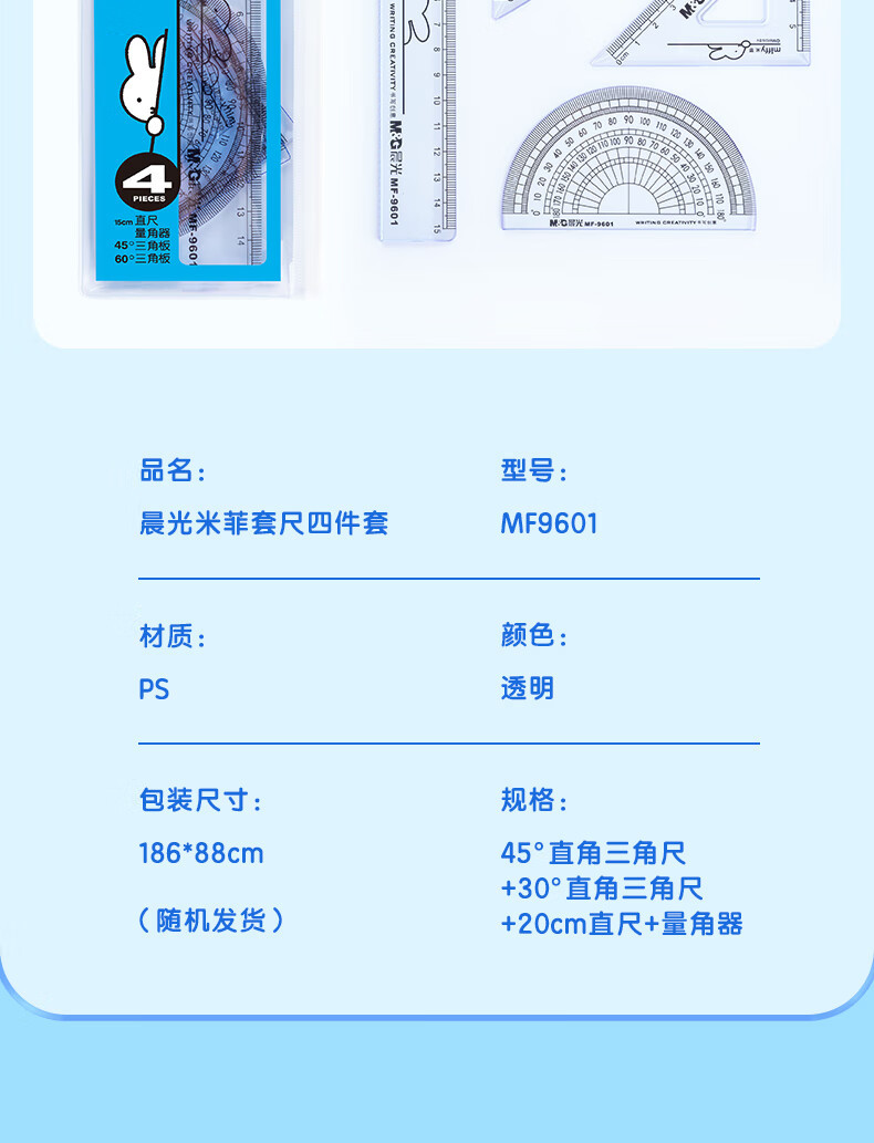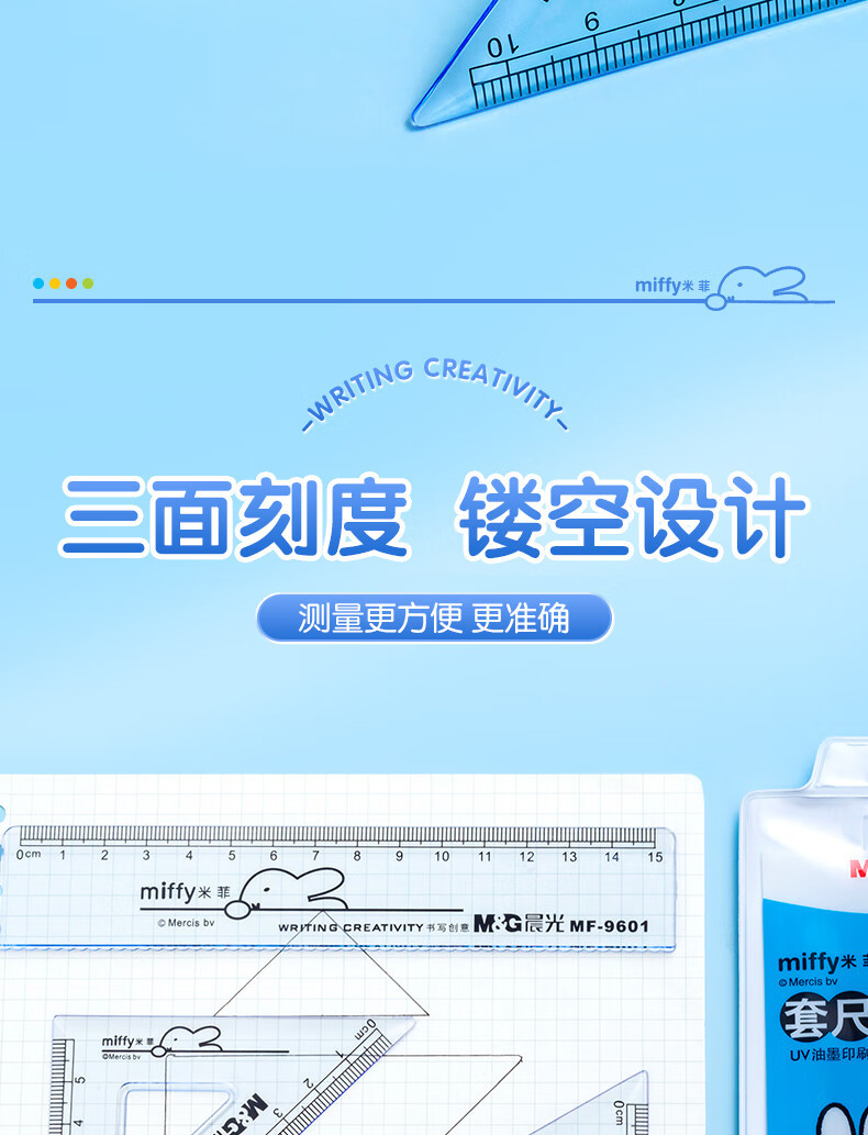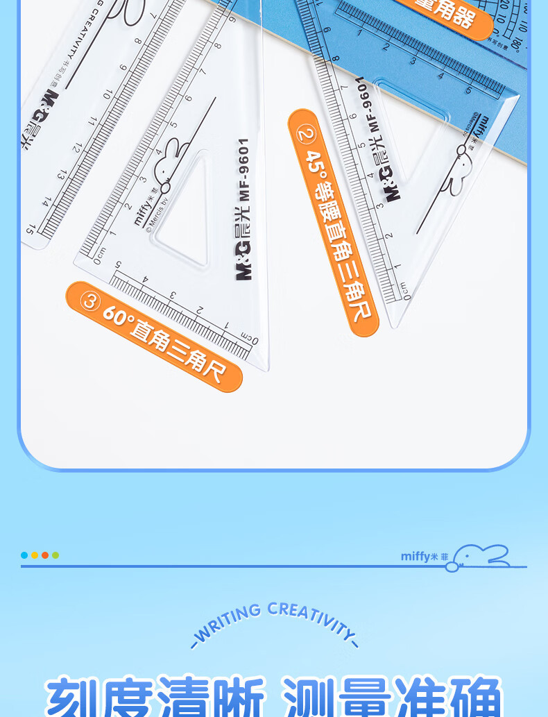 Chenguang Miffy 세트 통치자 삼각형 플레이트 각광기 물결 모양의 선 그리기 측정 도구 눈금자스토어 가기