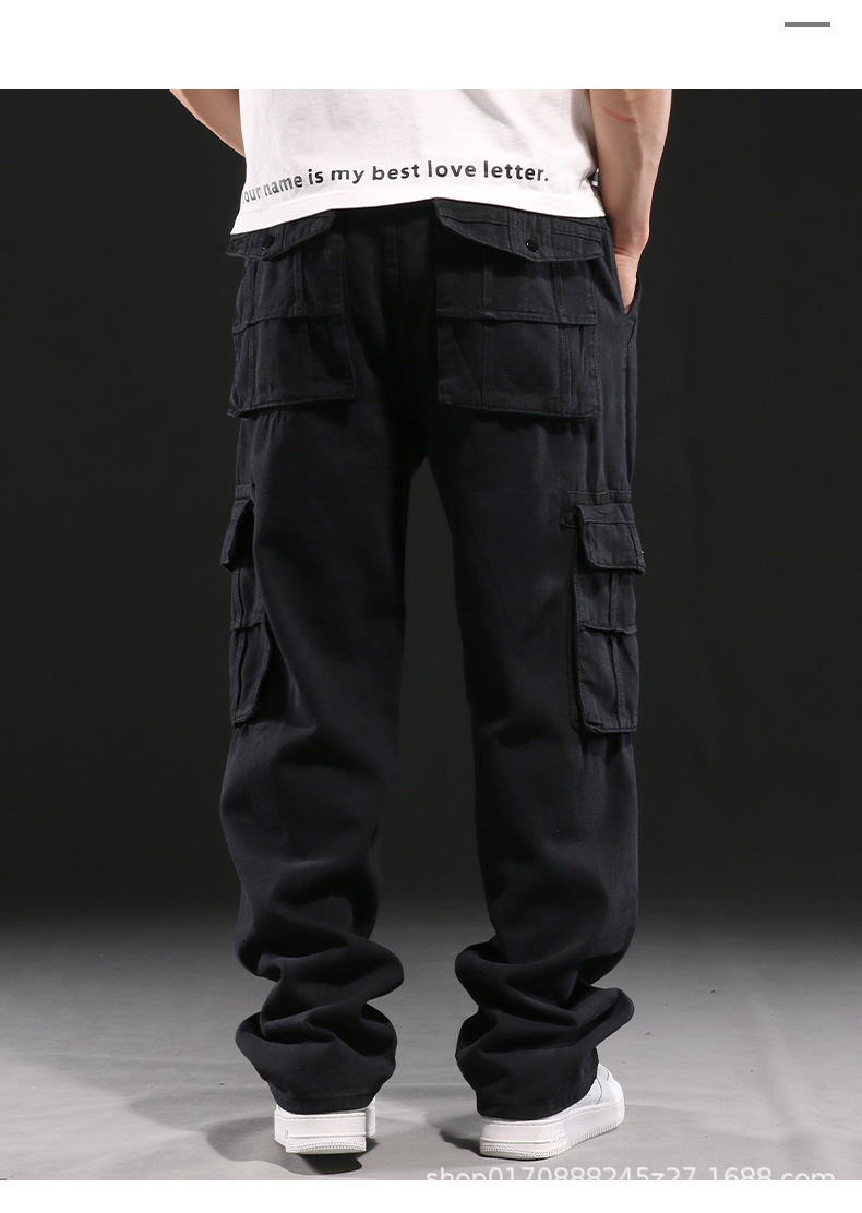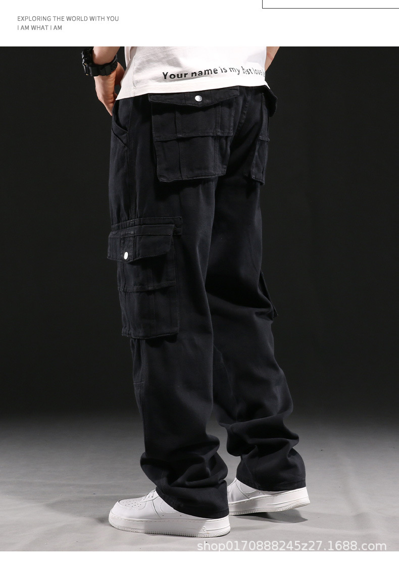 미국의 무거운 멀티 포켓 사료 청바지 남성용 느슨한 넓은 다리 플러스 사이즈 뚱뚱한 패션 브랜드 높은 허리 머리카락스토어 가기