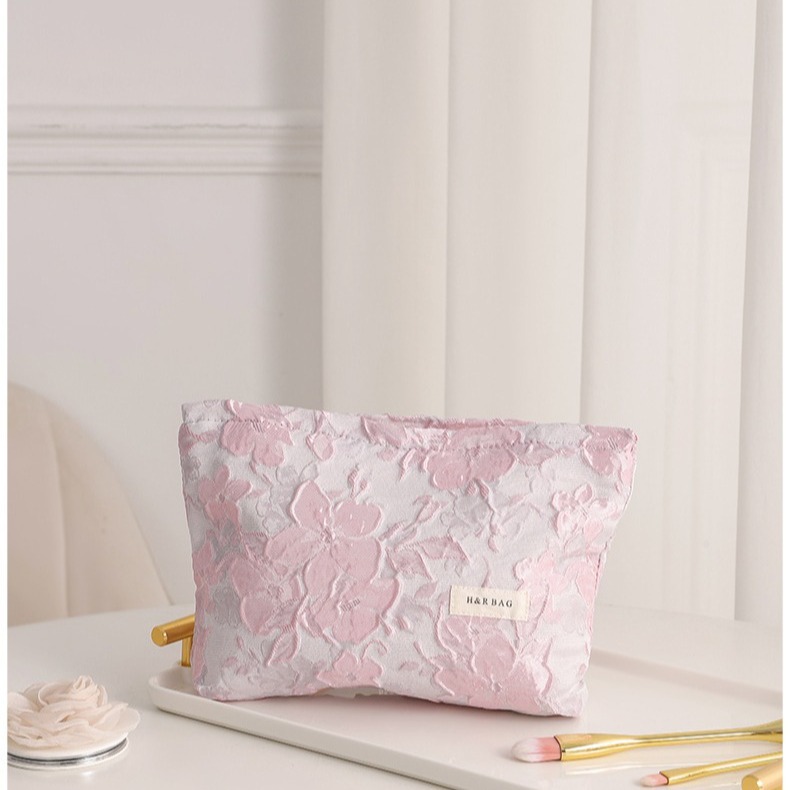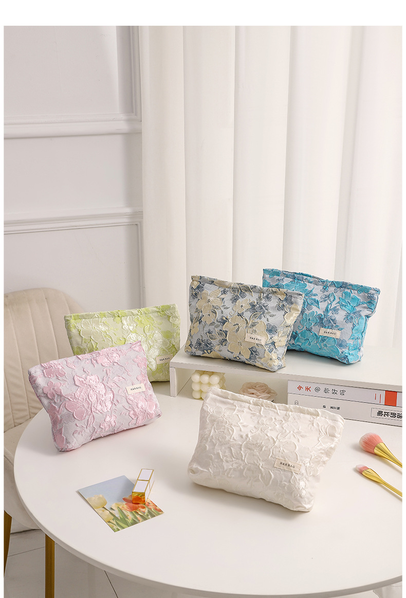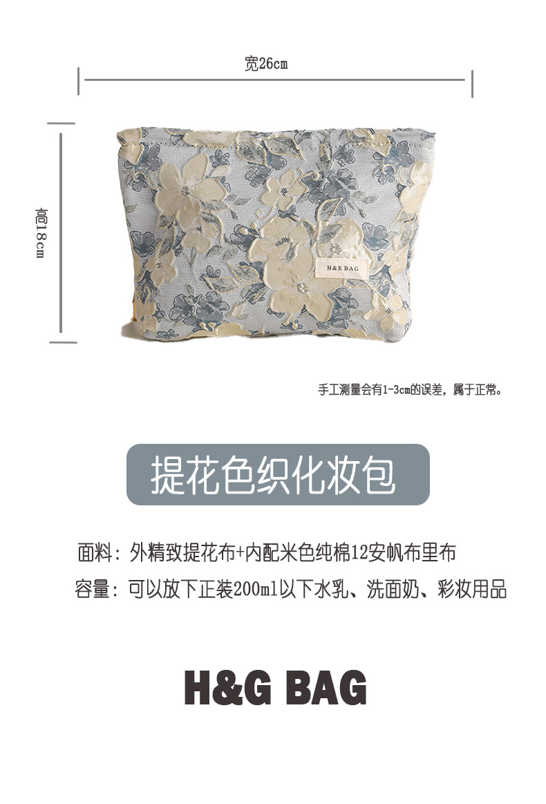 새로운 신선한 양각 자카드 화장품 가방 대용량 고급 스킨 케어 보관 가방 핸드 백 워시 백스토어 가기