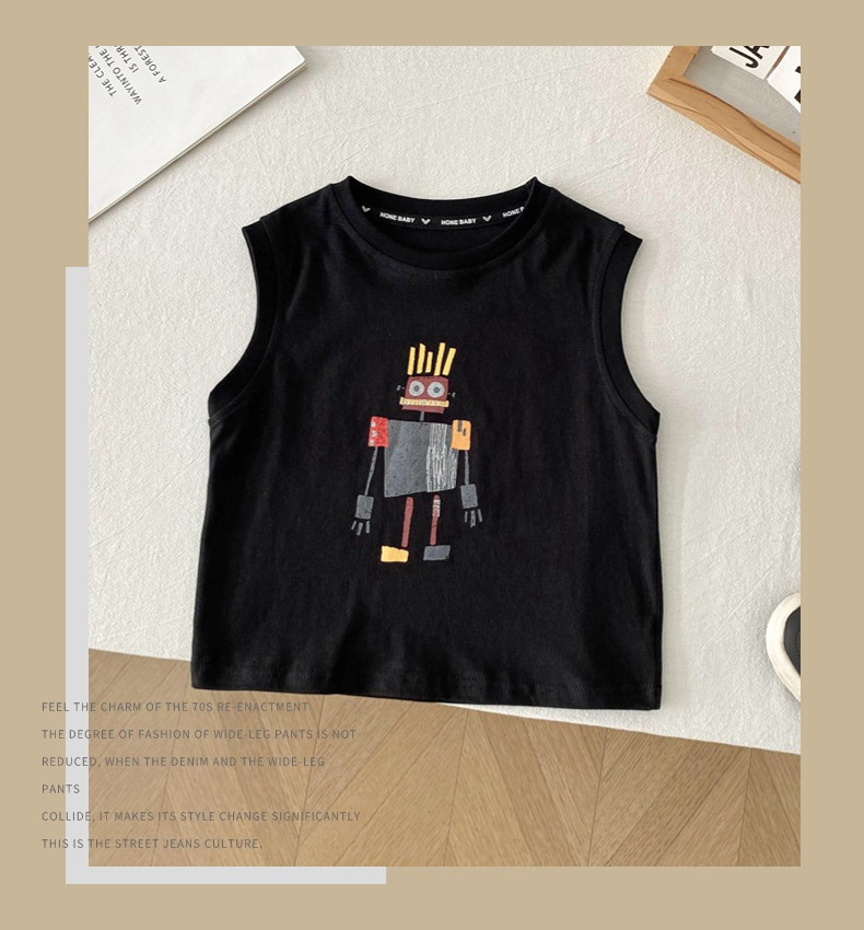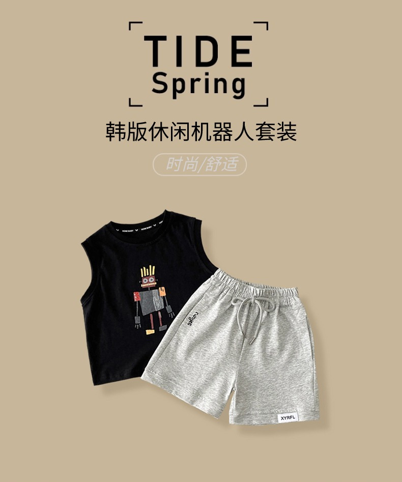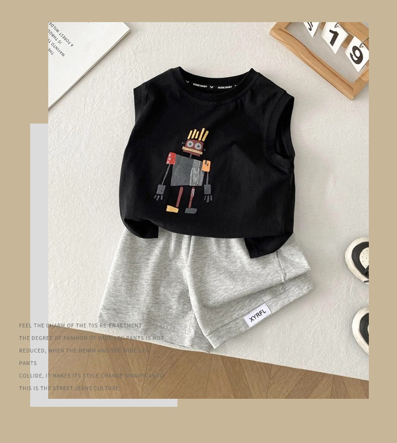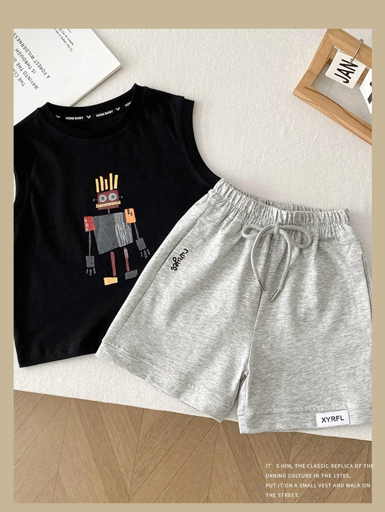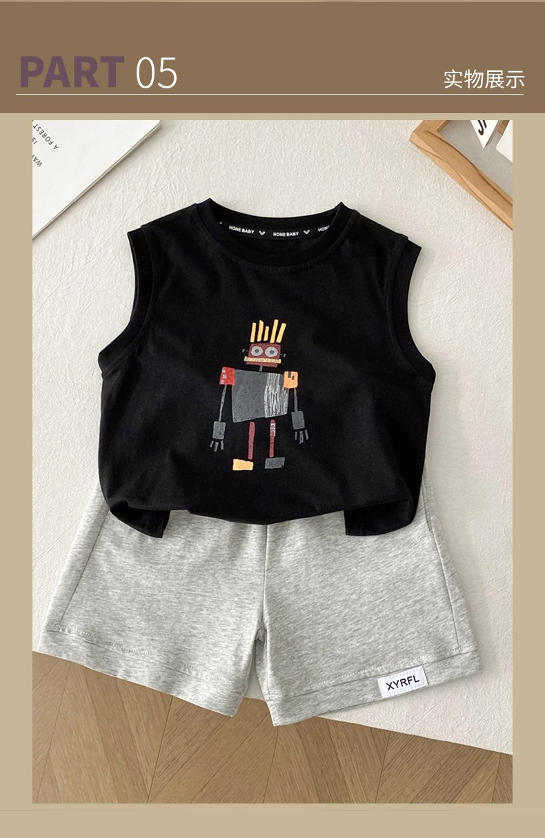 남아 로봇 조끼 세트 아기 소년 2026 여름 옷 어린이 멋진 여름 옷 민소매 투피스 세트스토어 가기