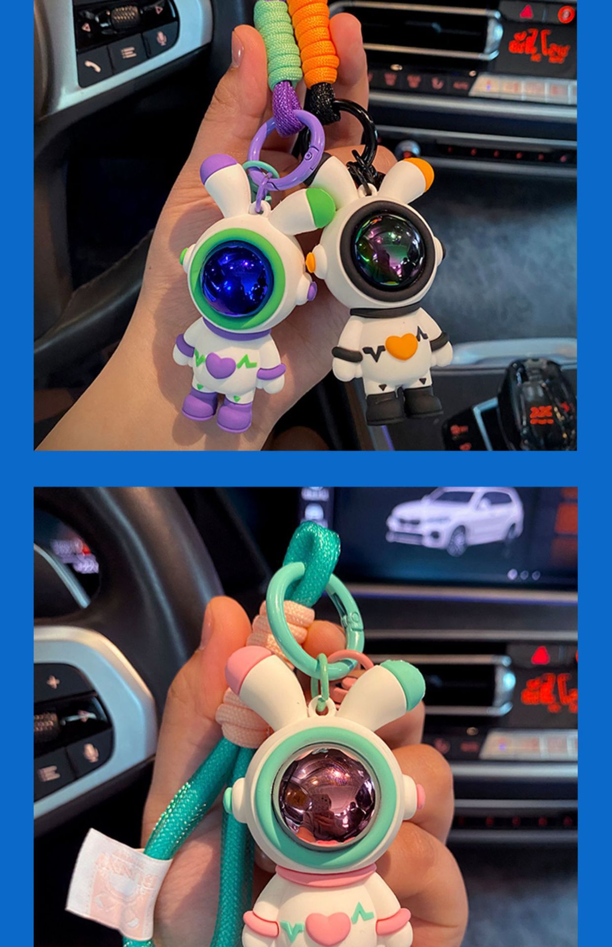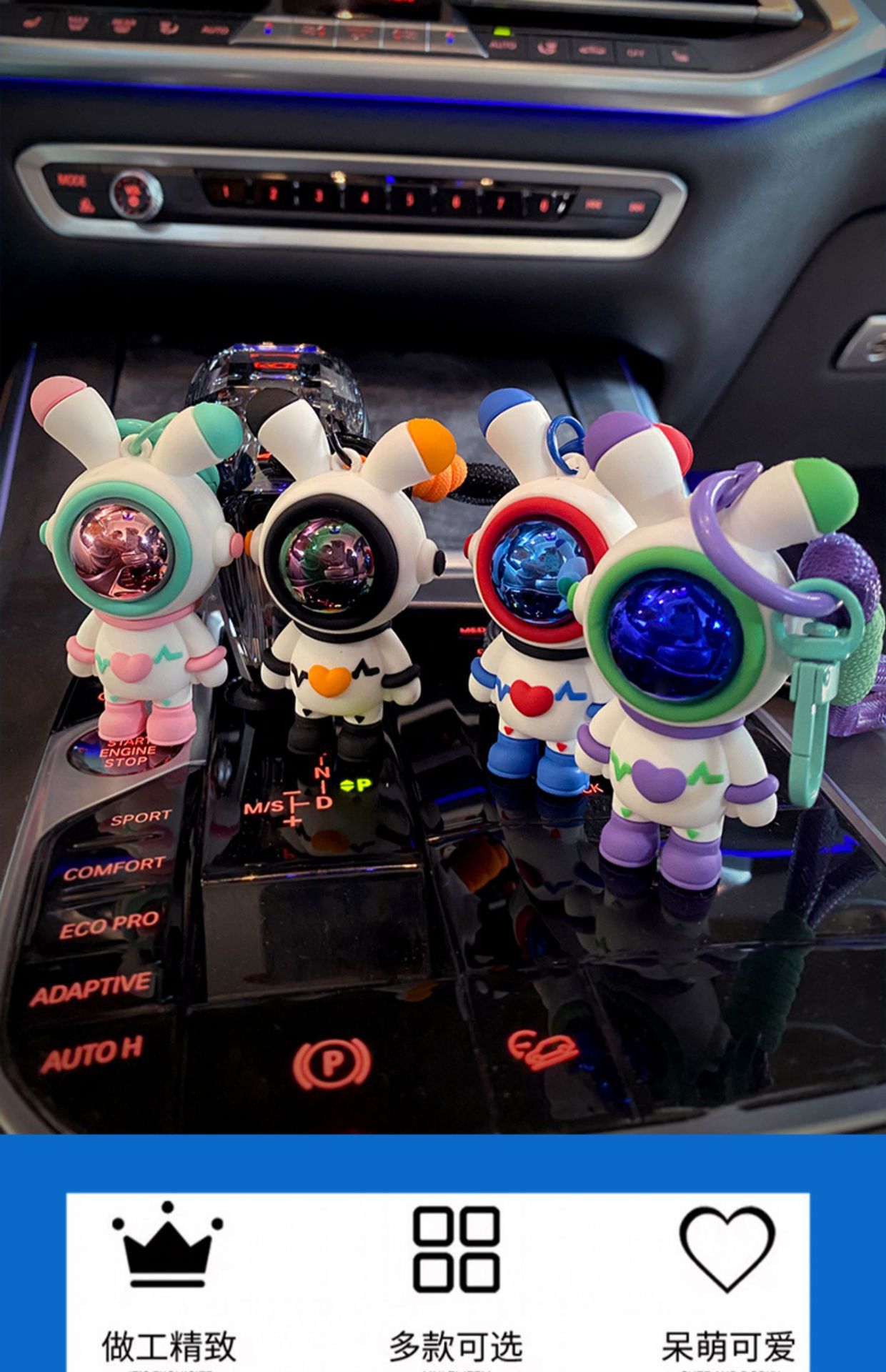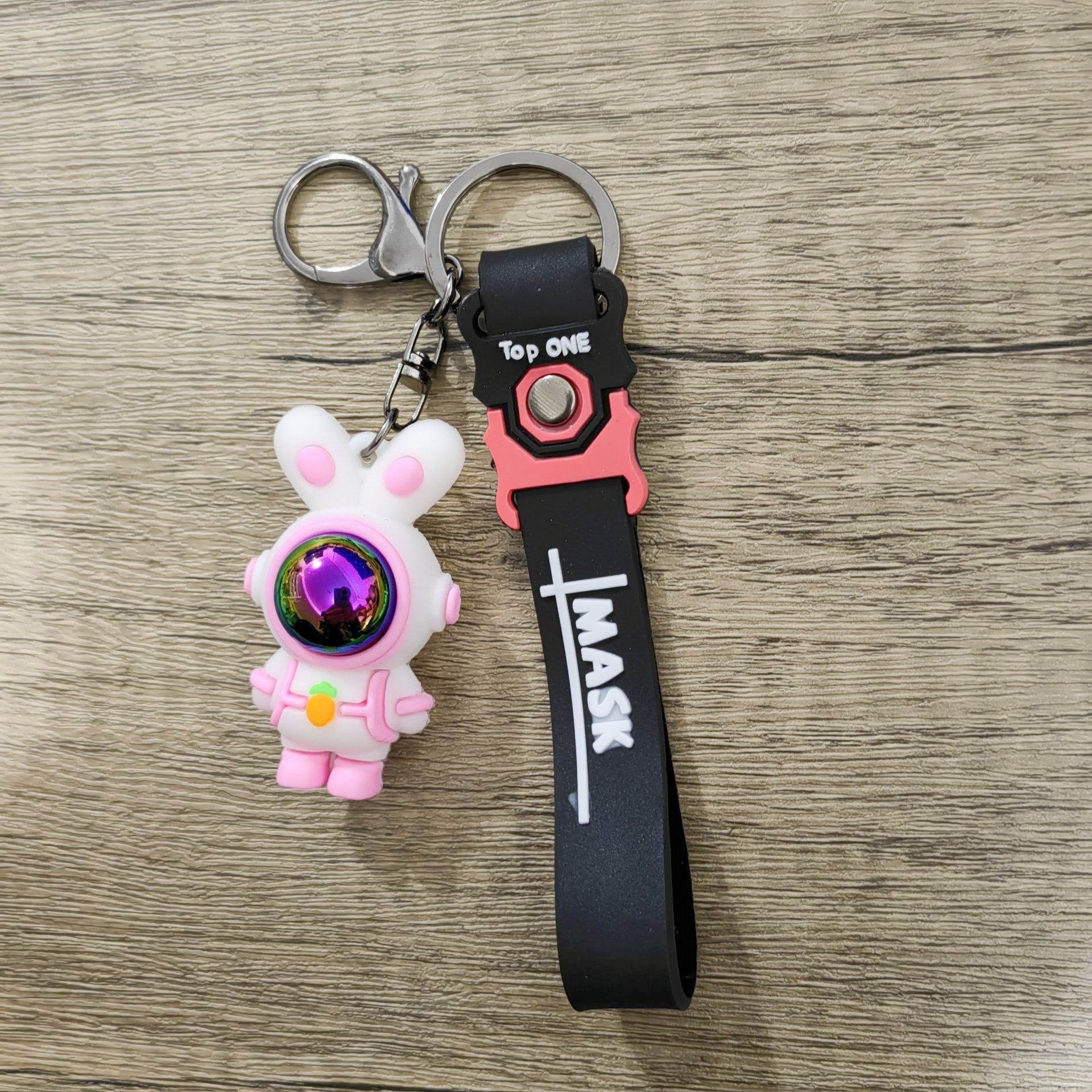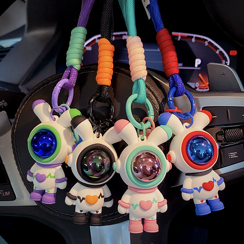 공간 토끼 자동차 키 체인 토끼 펜던트 공간 토끼 인형 기계 작은 선물 키 체인 매달려 장식품