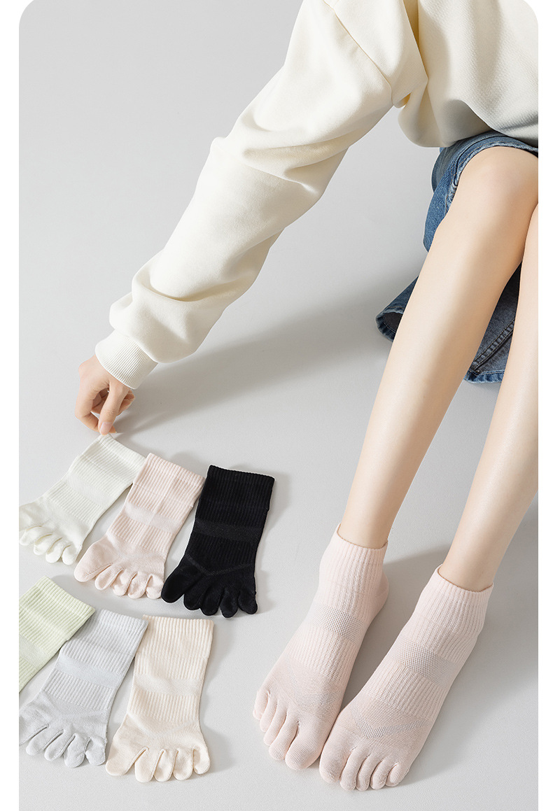봄과 여름 어린이를위한 5 손가락 보트 양말 얇은 5 손가락 양말은 여성을위한 땀 흡수성 통기성 항균 탈취제 발가락 짧은 양말로 떨어지지 않습니다.