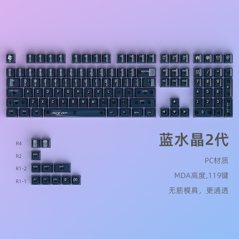 재고 도매 국경 아마존 하이지 뱀 크리스탈 기계 키 캡 MDA 높이 작은 전체 세트 119 키 PC 투명스토어 가기