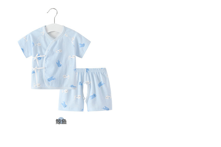 신생아 아기 옷 봄과 여름 얇은 순면 몽크 옷 분할 여름 옷 오픈 스타일 신생아 아기 반팔 세트