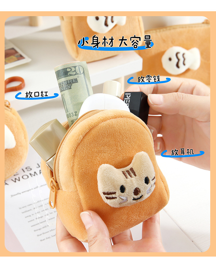귀여운 새끼 고양이 물고기 봉제 동전 지갑 학생 미니 지갑 키 건조 보관 가방 소녀 하트 헤드셋 가방스토어 가기