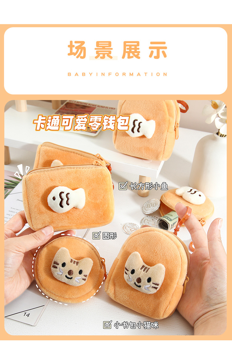 귀여운 새끼 고양이 물고기 봉제 동전 지갑 학생 미니 지갑 키 건조 보관 가방 소녀 하트 헤드셋 가방