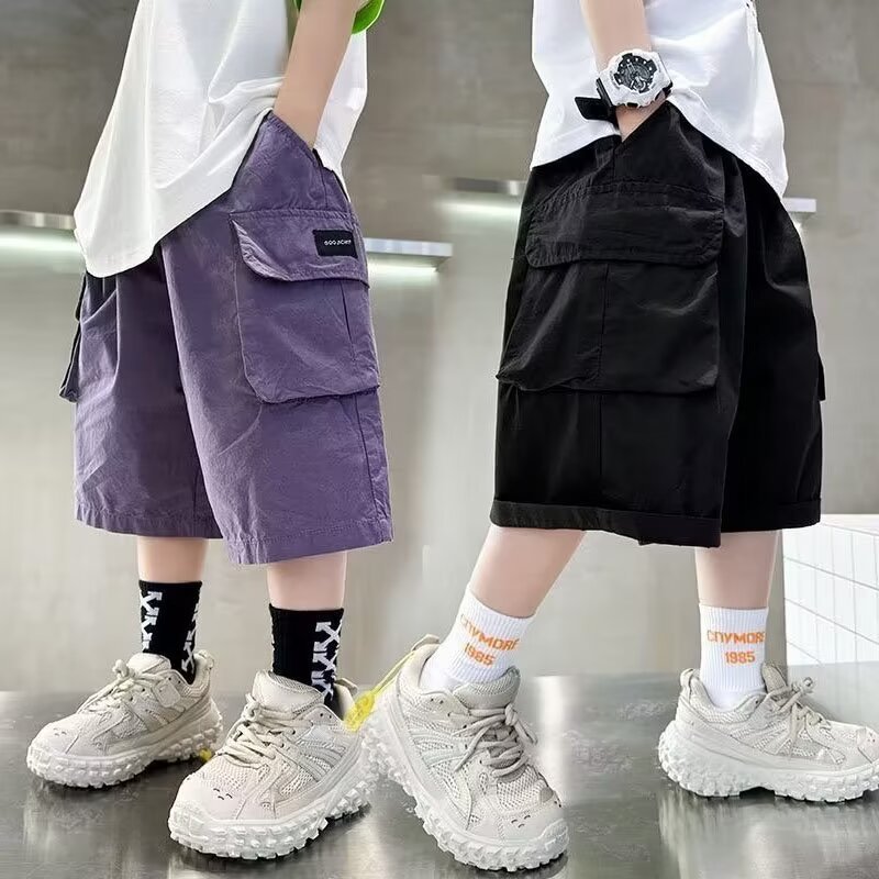소년 여름 작업복 반바지 2024 새로운 어린이 여름 원피스 잘 생긴 얇은 면 바지 느슨한 캐주얼 바지스토어 가기