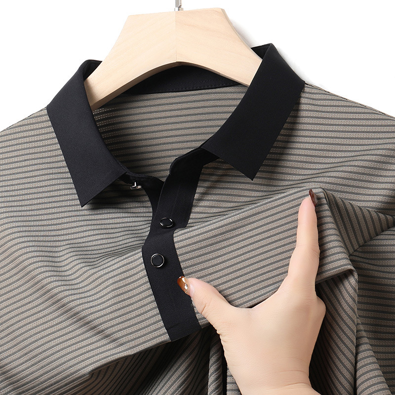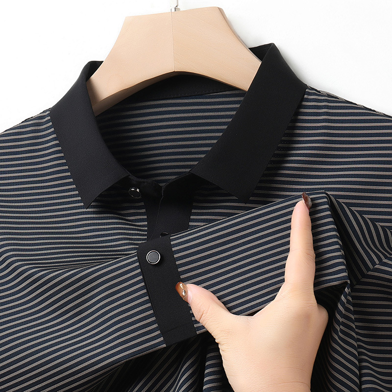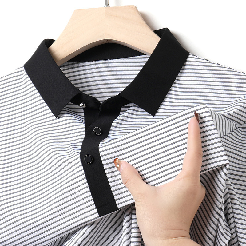 여름 젊은 및 중년 남성 패션 스트라이프 콘트라스트 라펠 풀오버 티셔츠 2024 새로운 POLO 셔츠 남성복스토어 가기