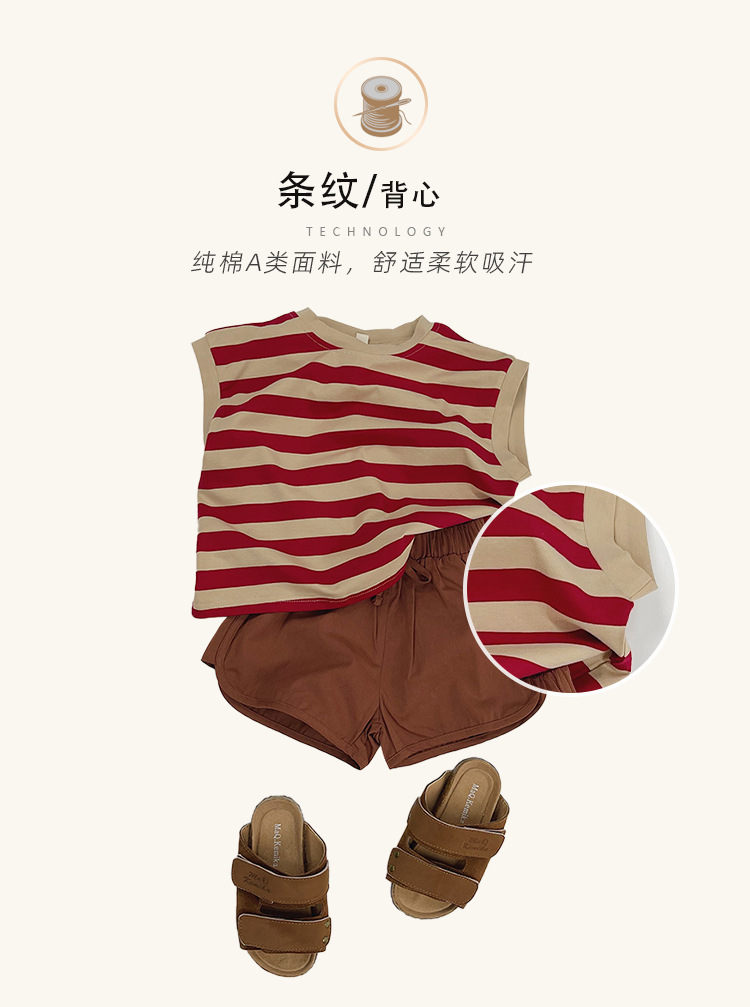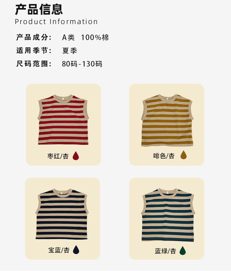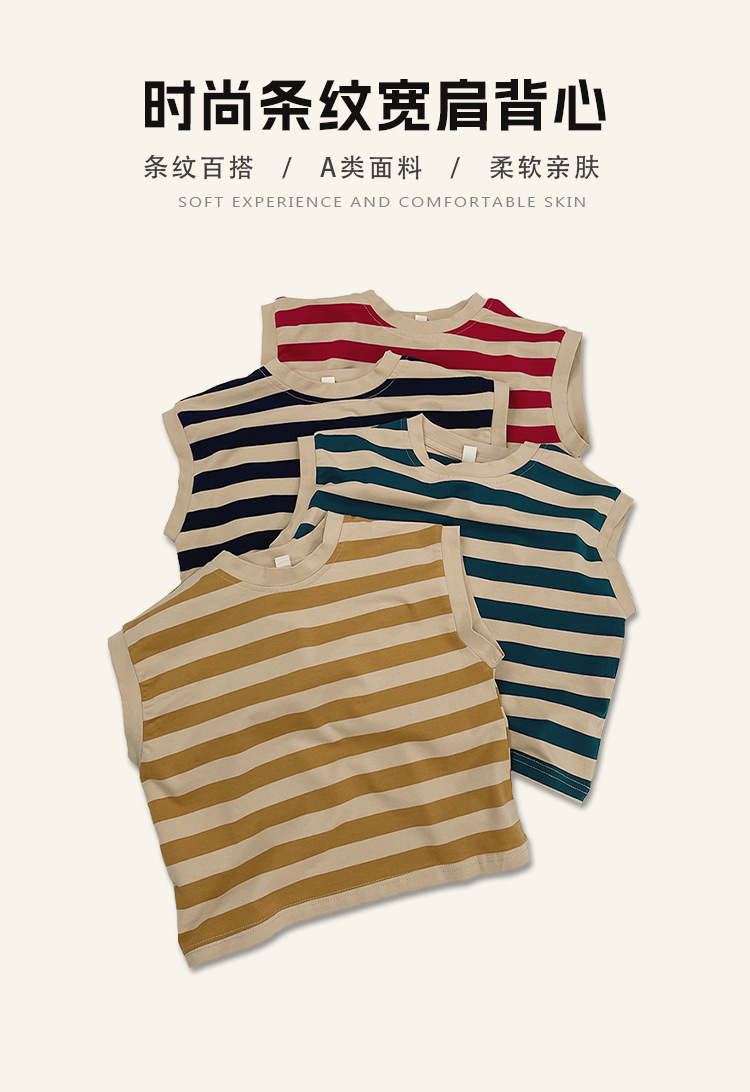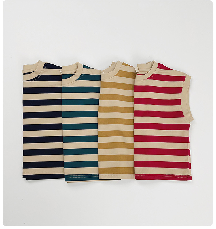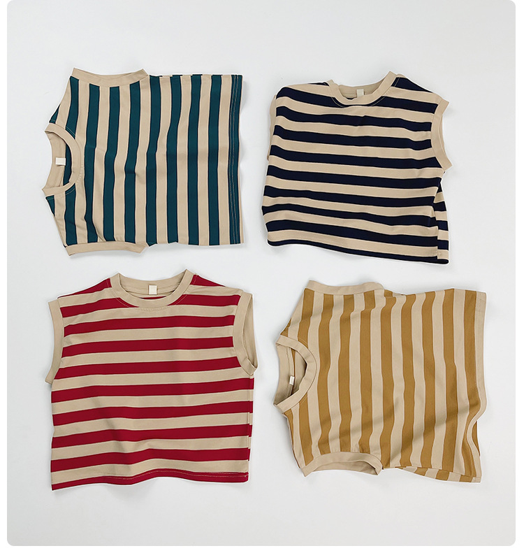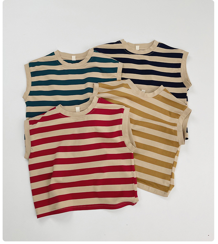 순면 스트라이프 조끼 아동용 여름 남녀공용 민소매 상의 한국 스타일 아동복 루즈핏 티셔츠 중소형 아동용스토어 가기