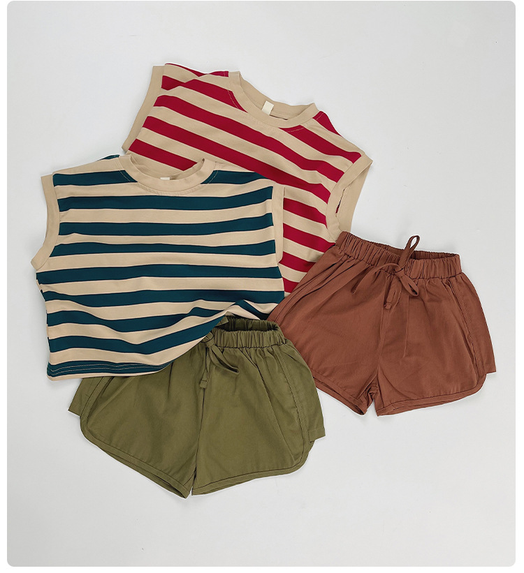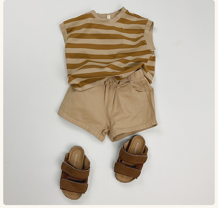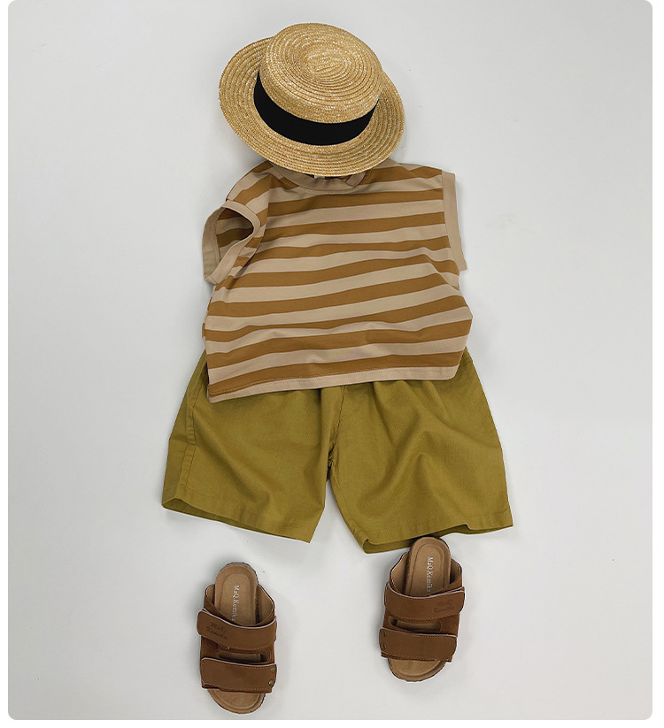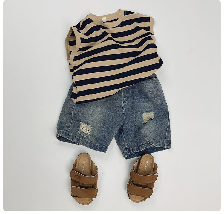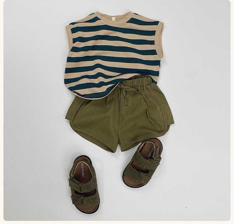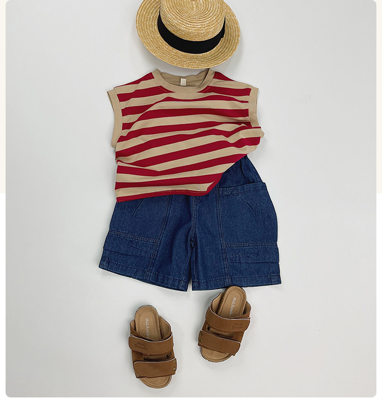 순면 스트라이프 조끼 아동용 여름 남녀공용 민소매 상의 한국 스타일 아동복 루즈핏 티셔츠 중소형 아동용스토어 가기
