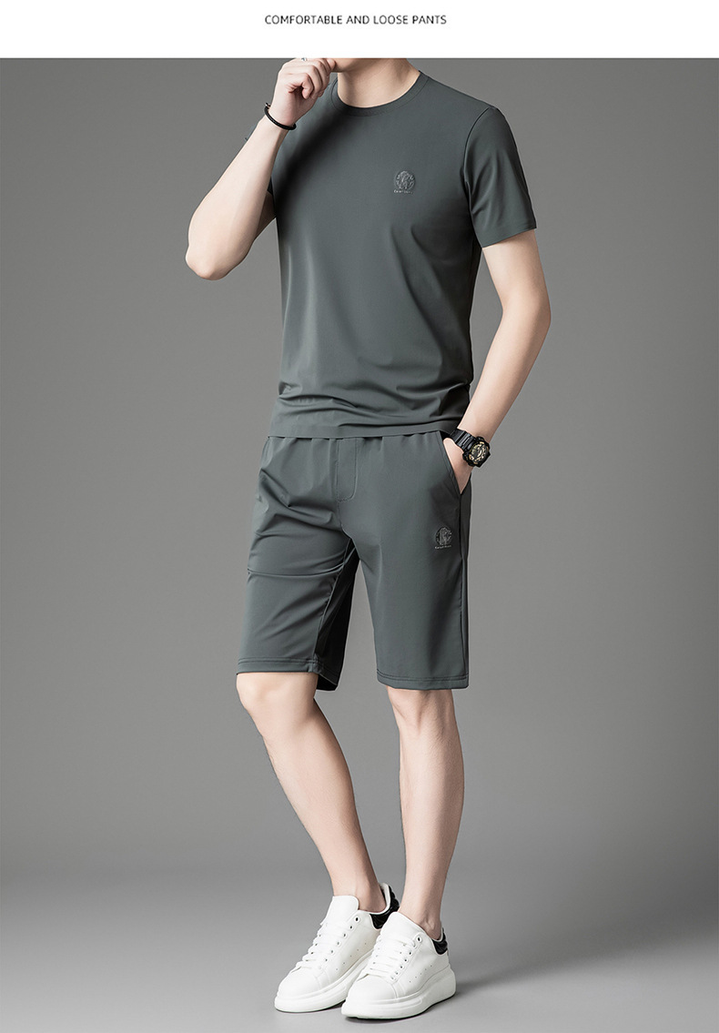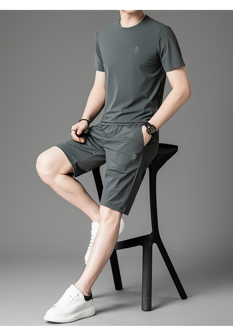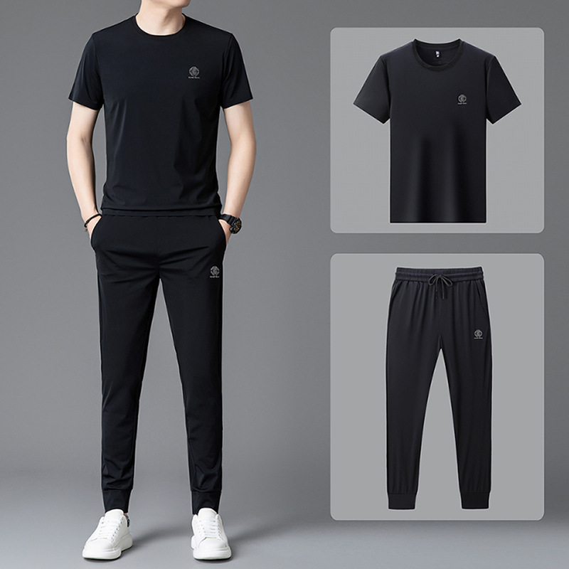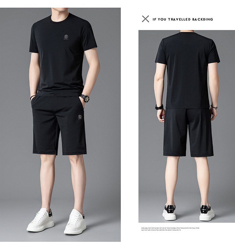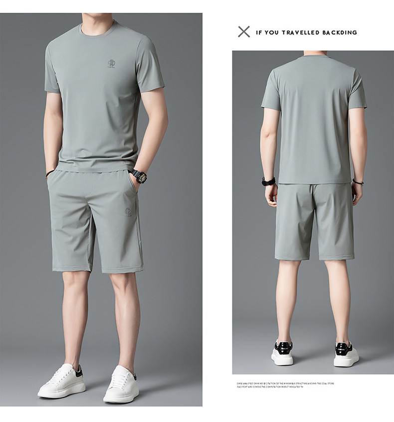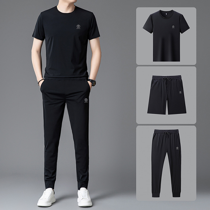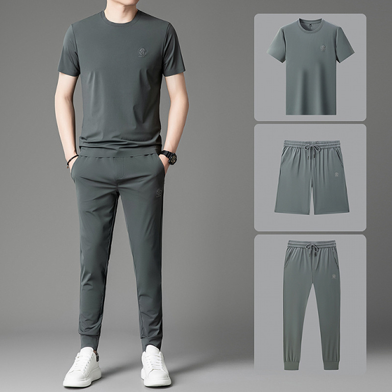 남자 아이스 실크 빠른 건조 노마크 3 피스 세트 남자 2024 년 여름 뉴 청소년 스포츠 세트 남자 하이 엔드 센스스토어 가기