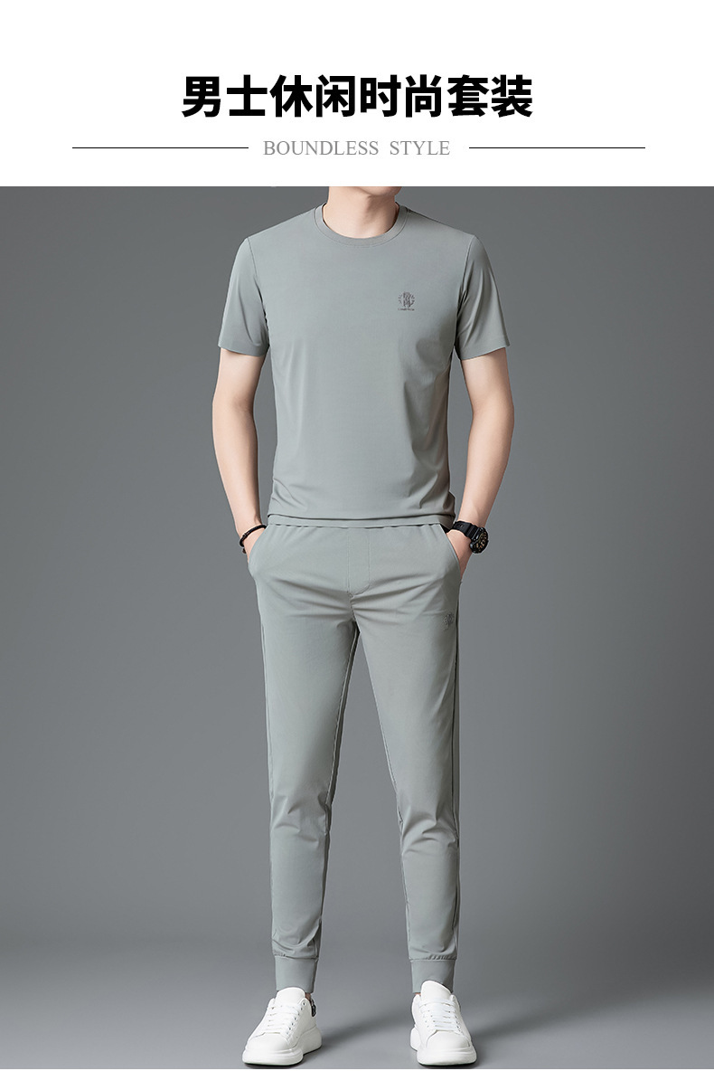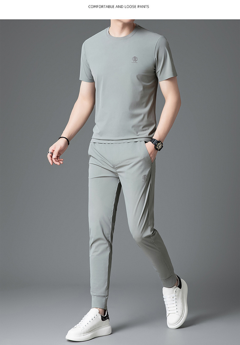 • 라이트 그레이 바지 짧은 소매 두 조각 세트