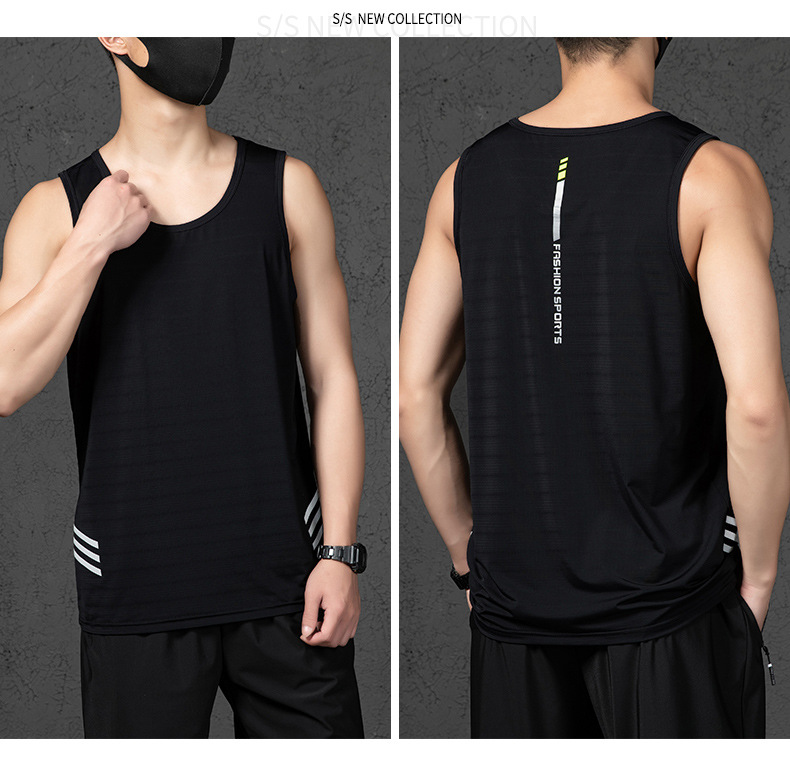 L-8X 초대형 아이스 실크 메쉬 조끼 남성 여름 유행 민소매 티셔츠 루즈 스포츠 양복 조끼 러닝 속건 의류