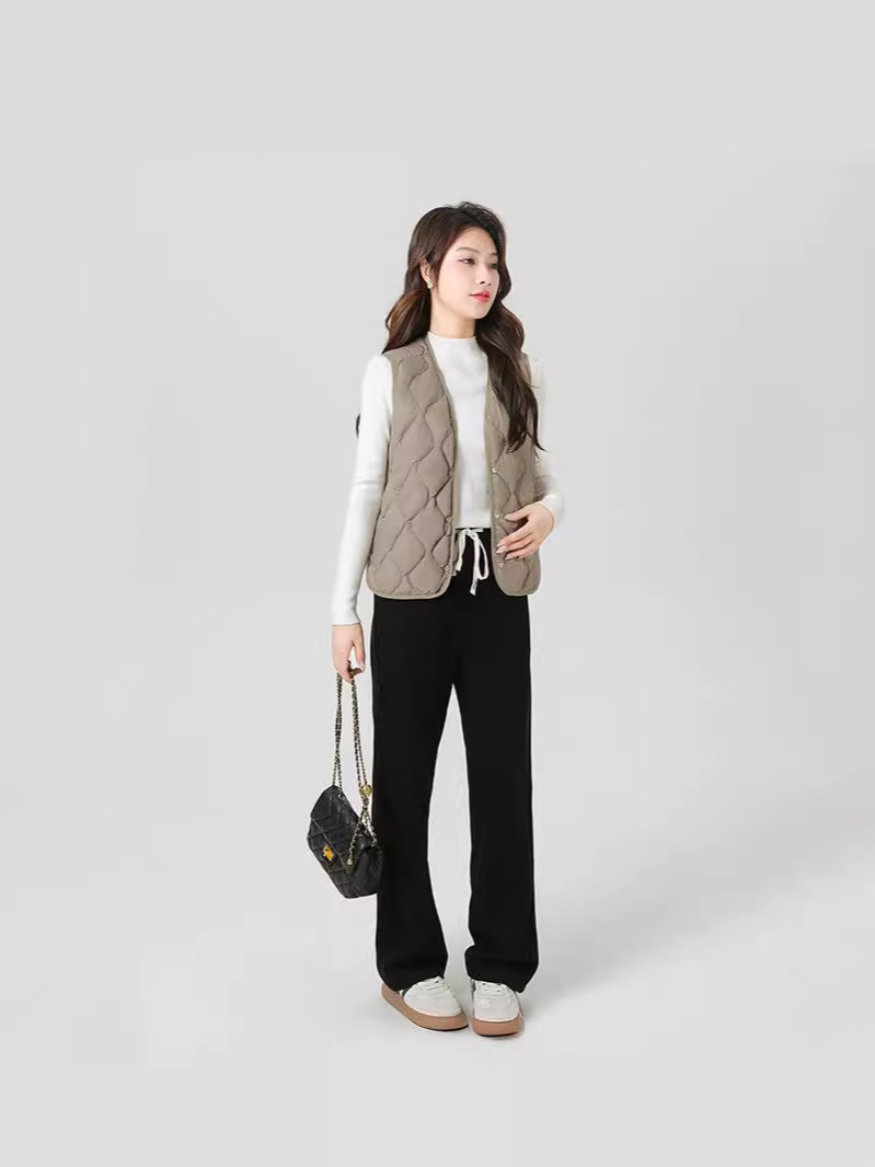 2025년 겨울 신상 클라우드 여성 조끼 90% 화이트 덕다운 여성용 가볍고 얇은 브이넥 이너웨어 조끼