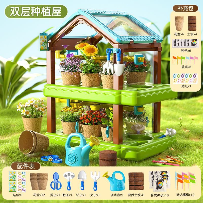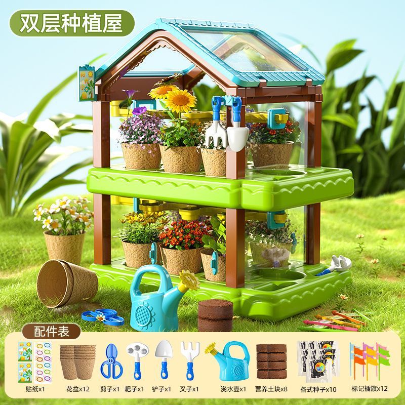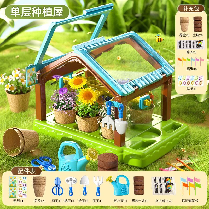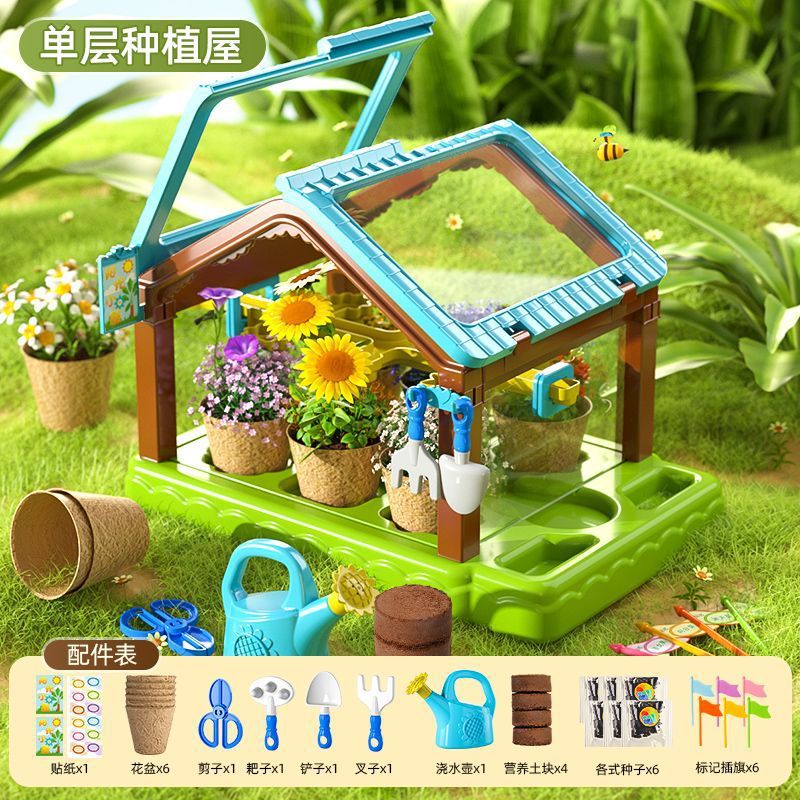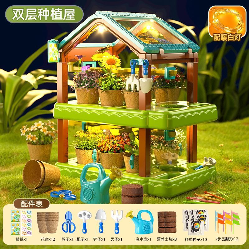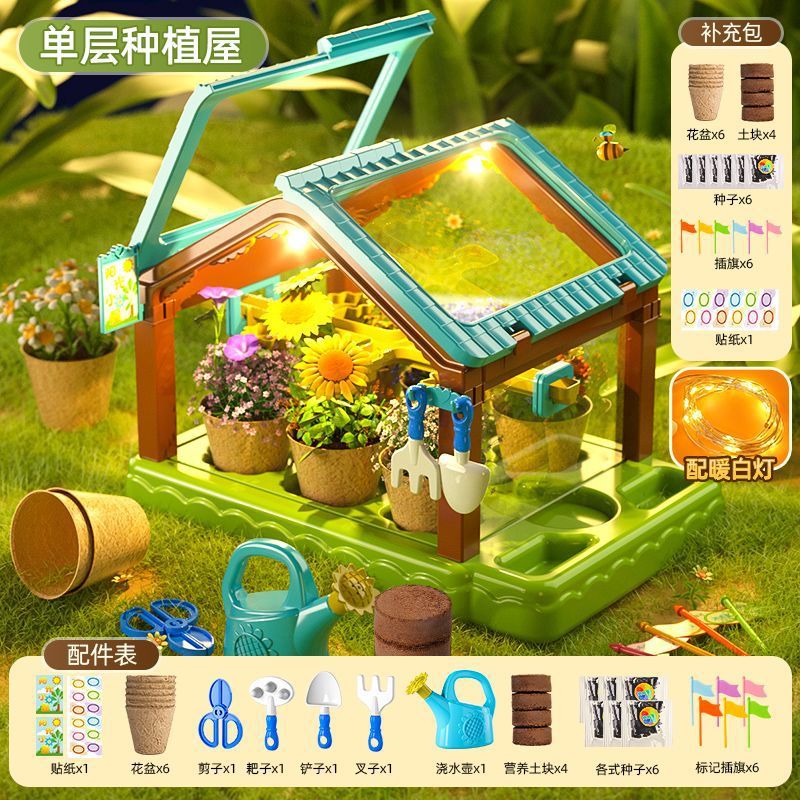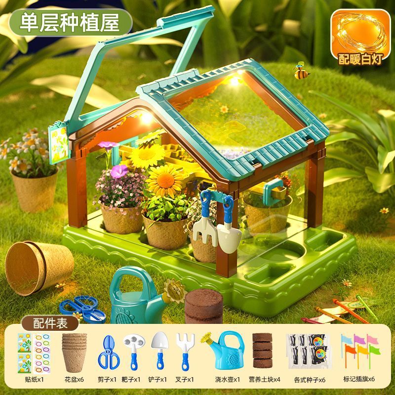 어린이용 선룸 식물 재배 농장 매화 정원 놀이집 미니 온실 장난감 과학 실험 선물스토어 가기