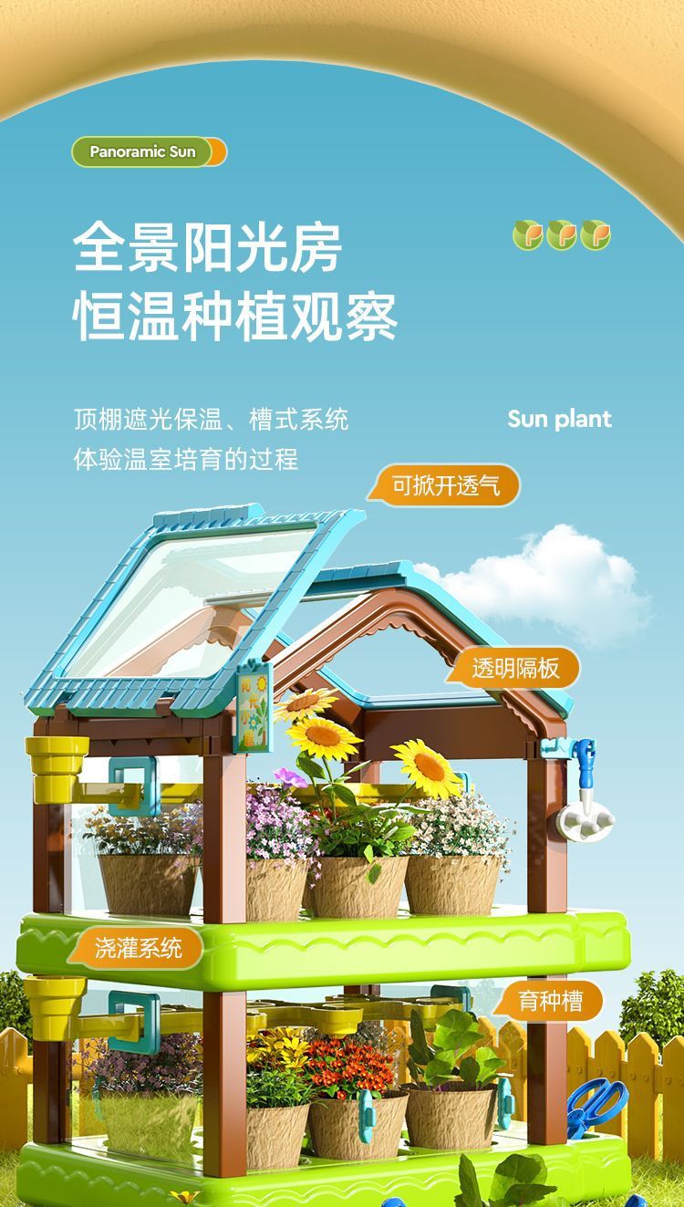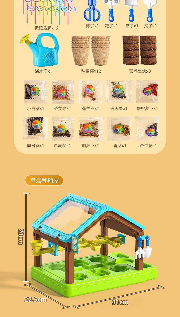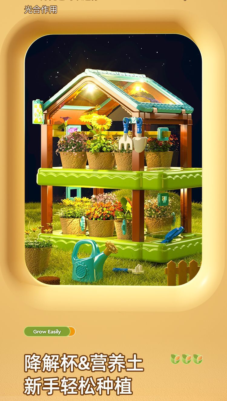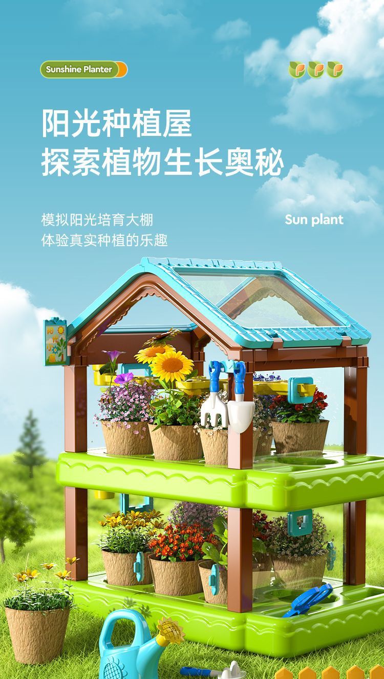 어린이용 선룸 식물 재배 농장 매화 정원 놀이집 미니 온실 장난감 과학 실험 선물스토어 가기