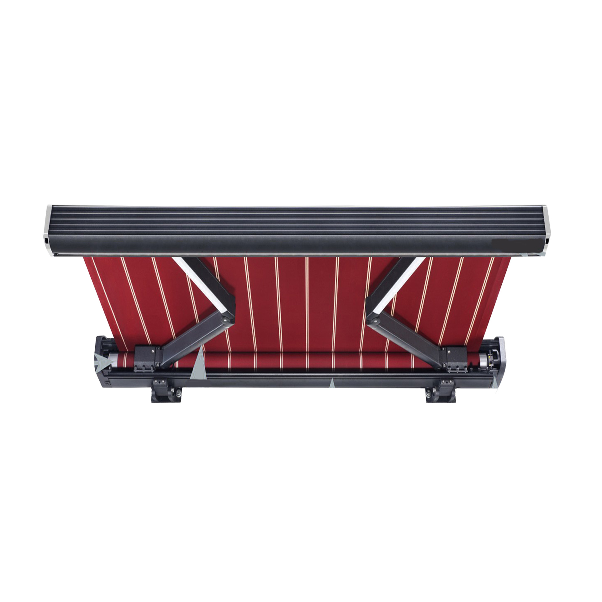 重型电动全盒式户外铝制伸缩遮阳篷,带发光二极管臂