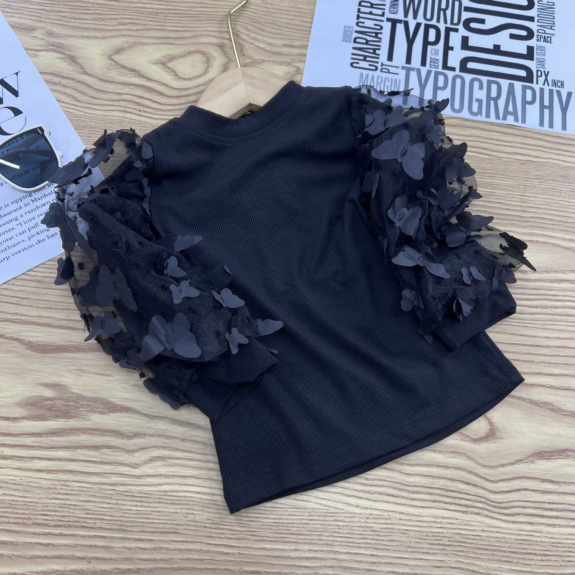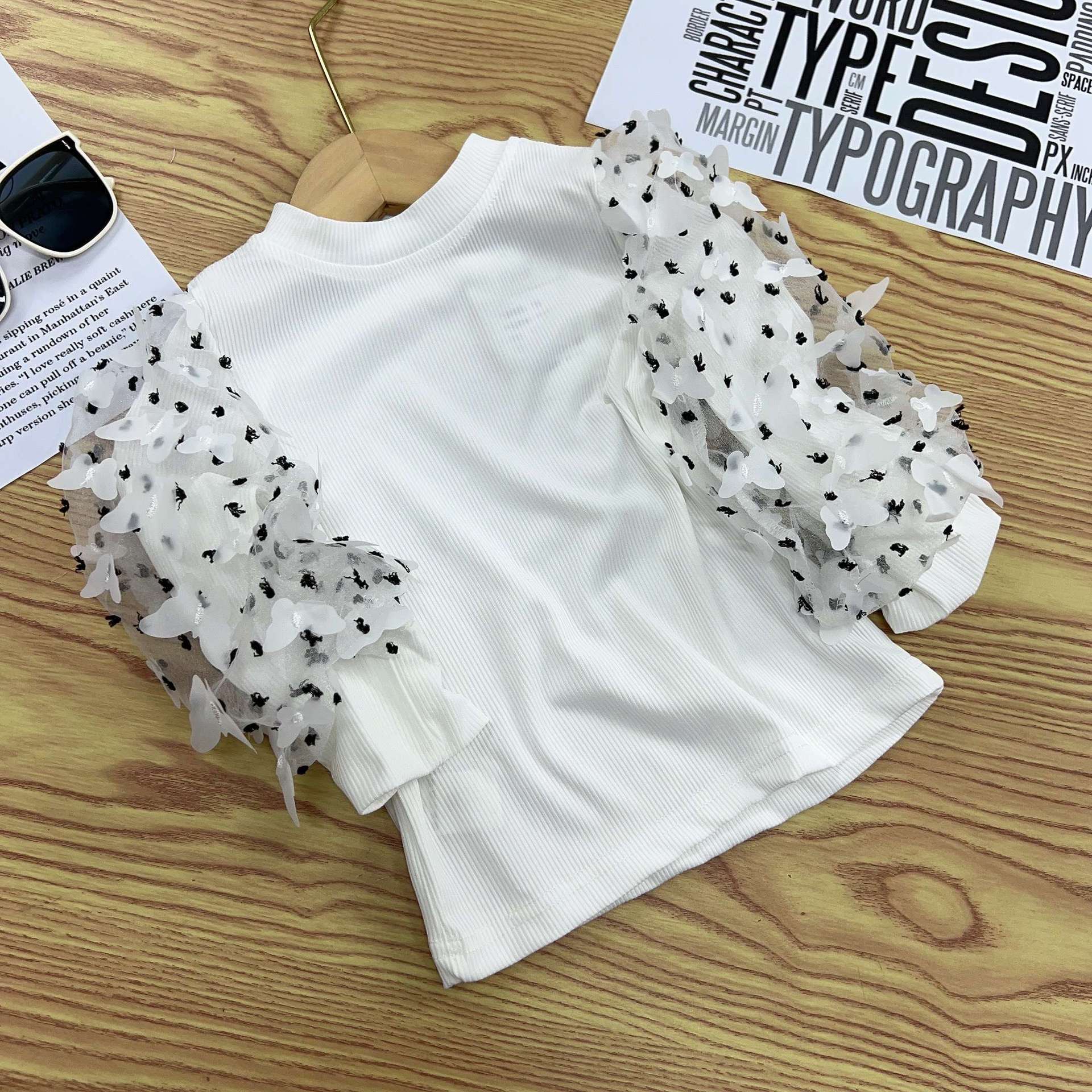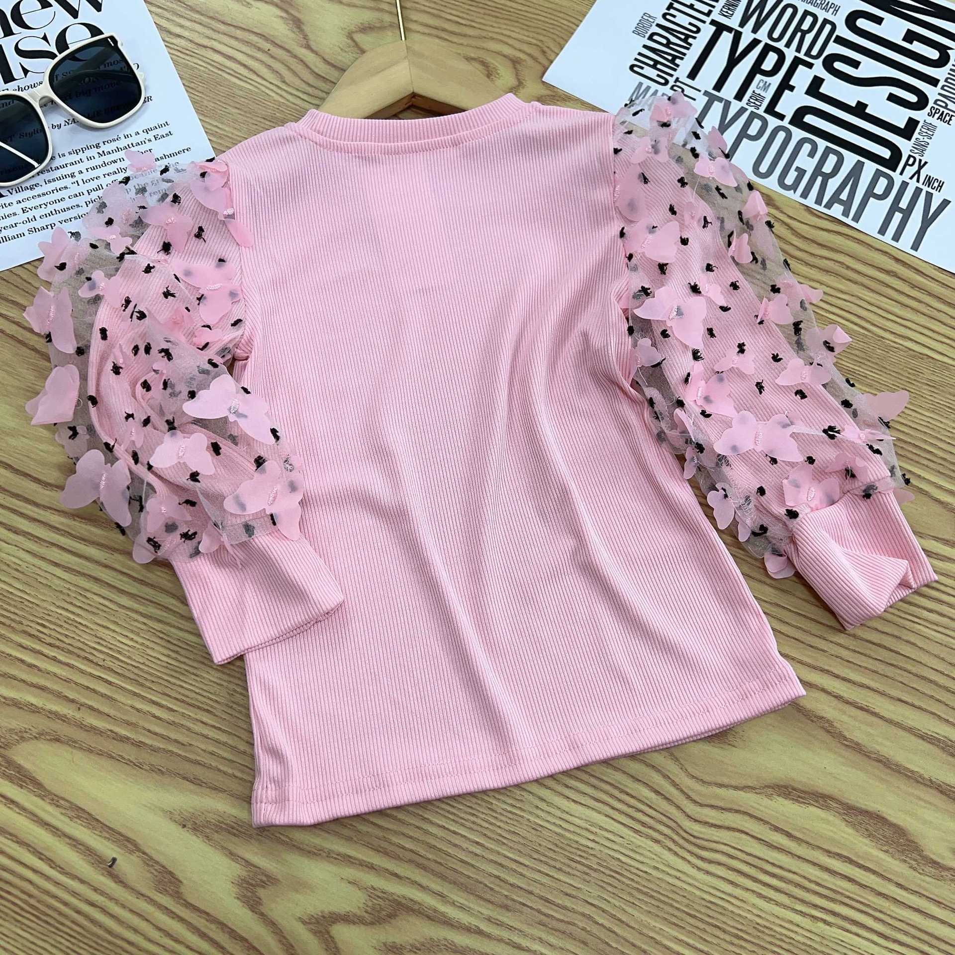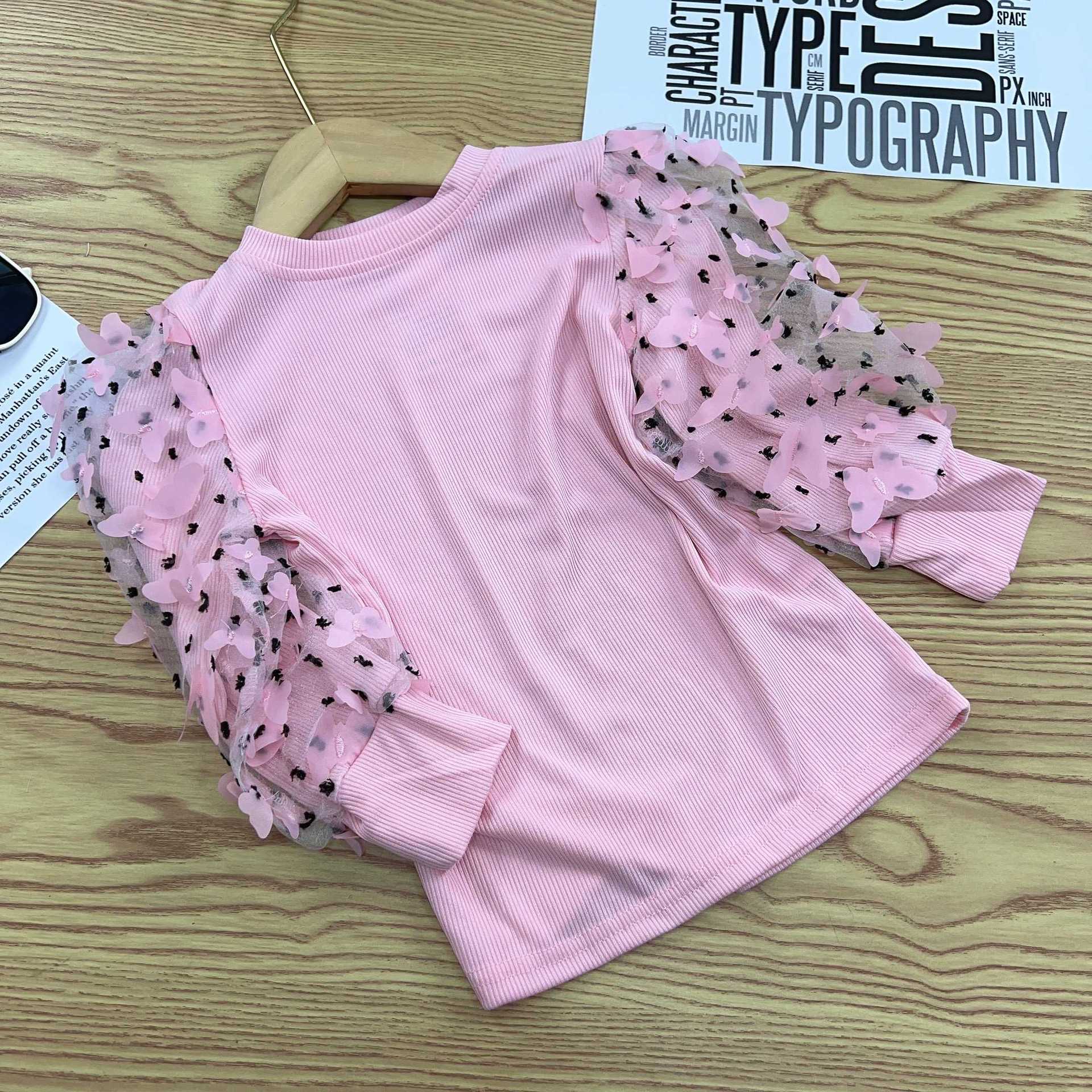 유럽과 미국의 대외 무역 INS 봄과 가을 새로운 소녀 메쉬 허리 풀오버 어린이 내부 긴 소매베이스 셔츠 단색 T스토어 가기