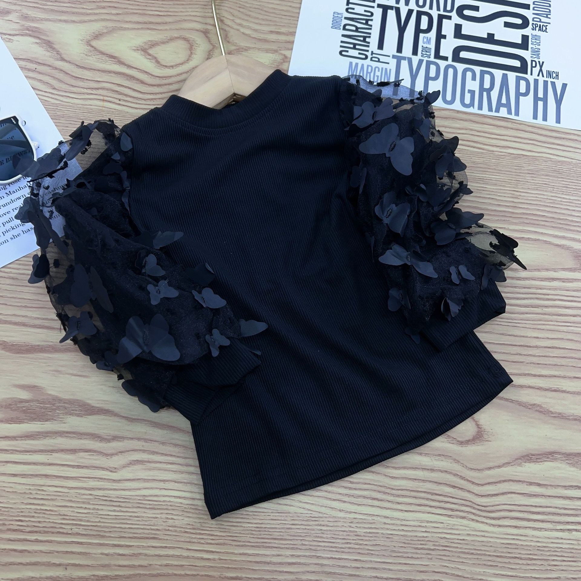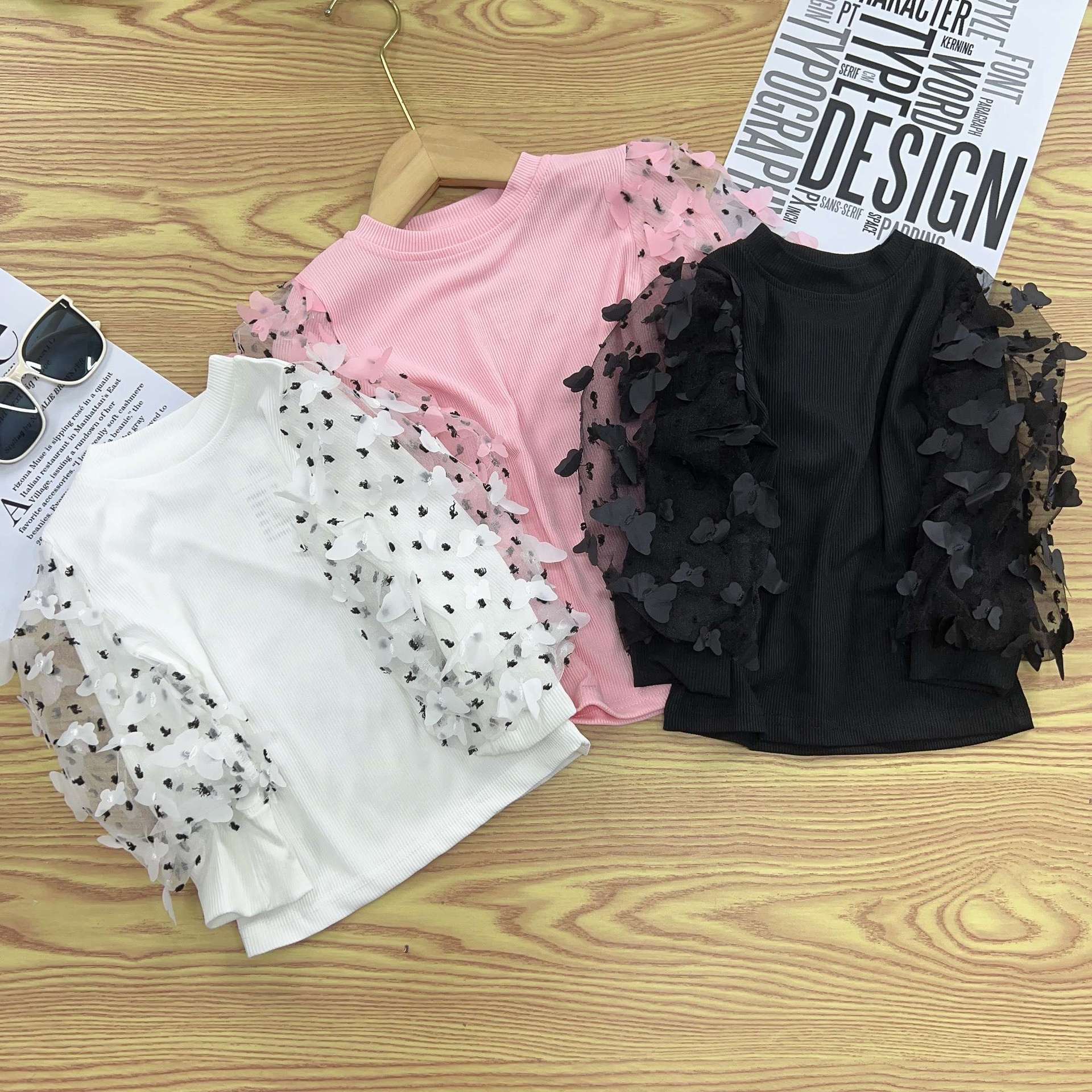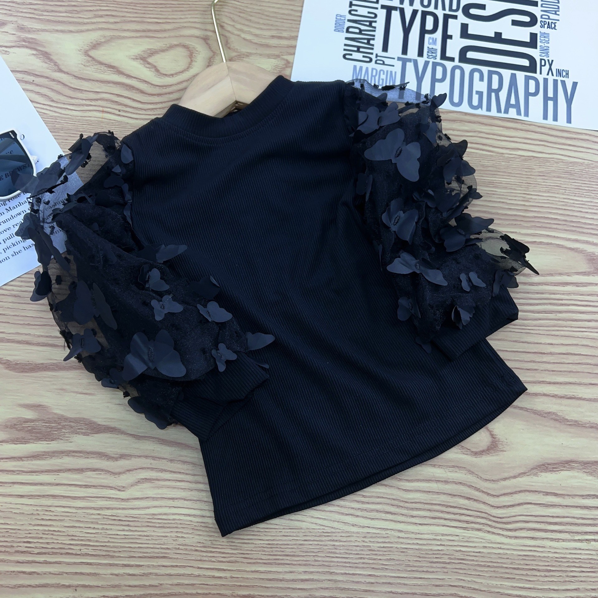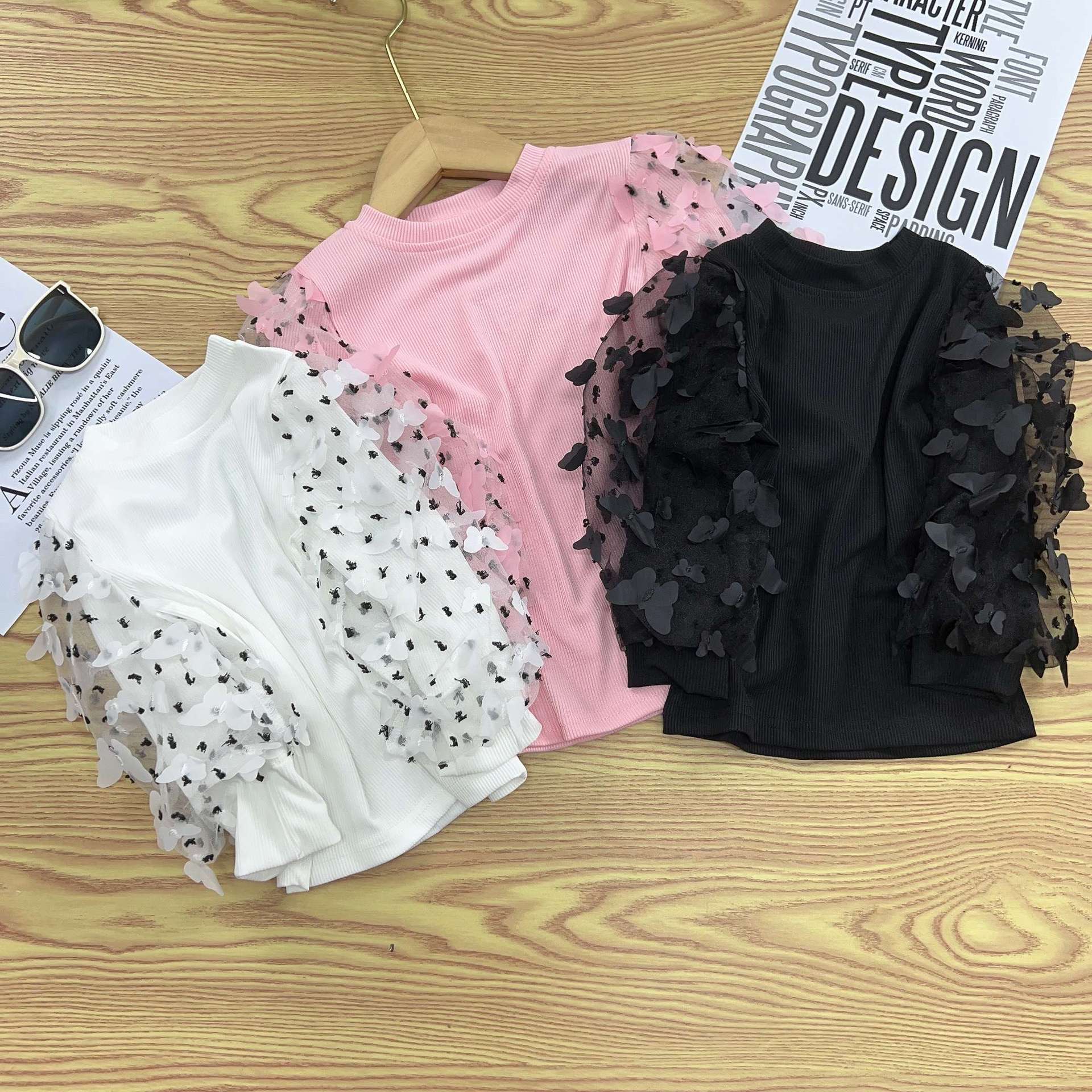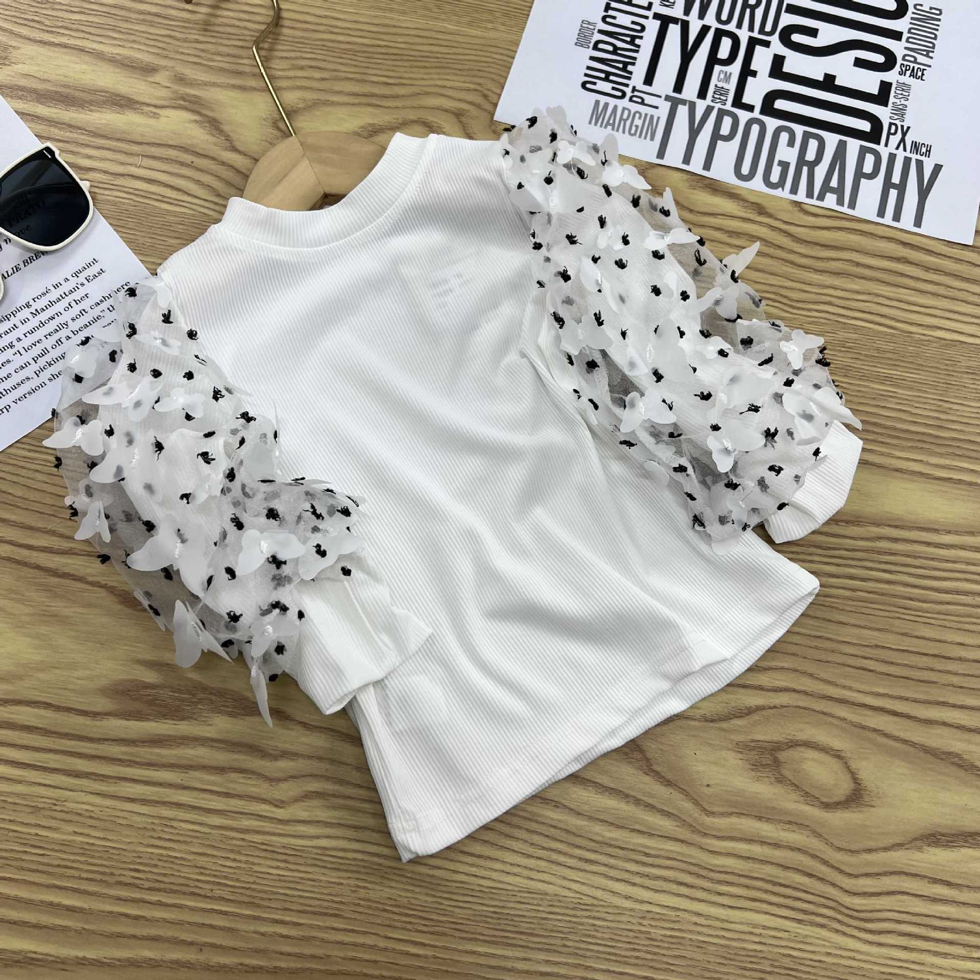 유럽과 미국의 대외 무역 INS 봄과 가을 새로운 소녀 메쉬 허리 풀오버 어린이 내부 긴 소매베이스 셔츠 단색 T스토어 가기