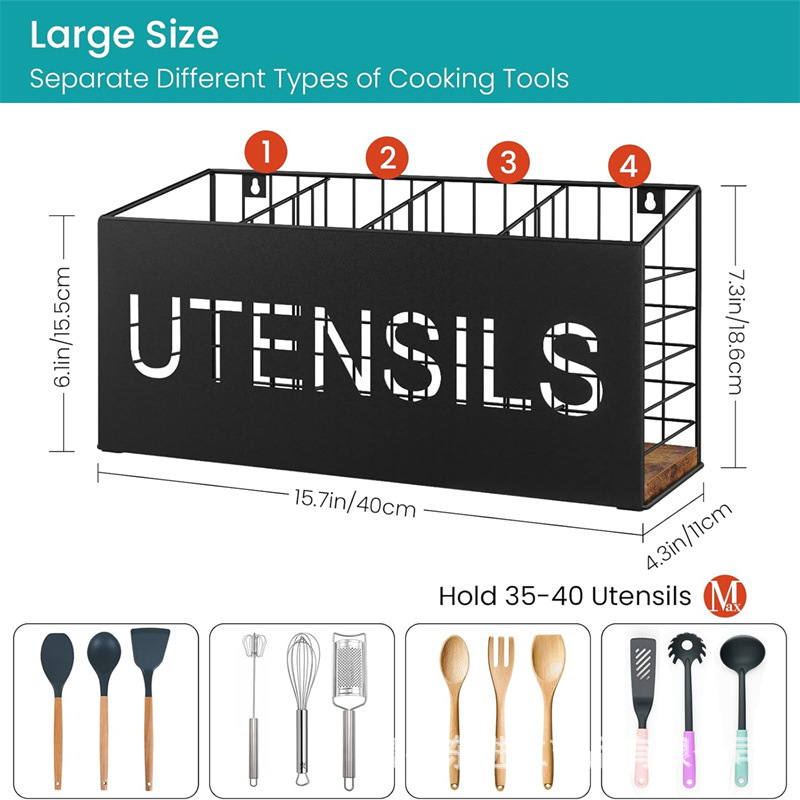 나무 식기 상자 주방 벽 배수 랙 조리기구 스크레이퍼 파티션 분류 상자 중공 솔리드 우드 나이프와 포크 랙스토어 가기