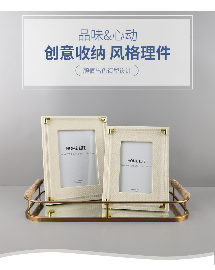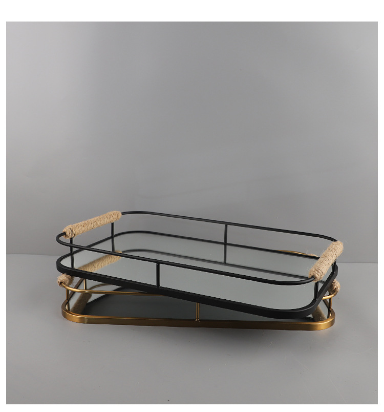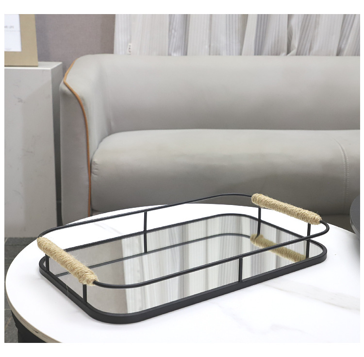 유럽 스타일 가벼운 고급 유리 거울 금속 아로마 테라피 트레이 데스크탑 장식 거실 침실 입구 소프트 홈 액세서리