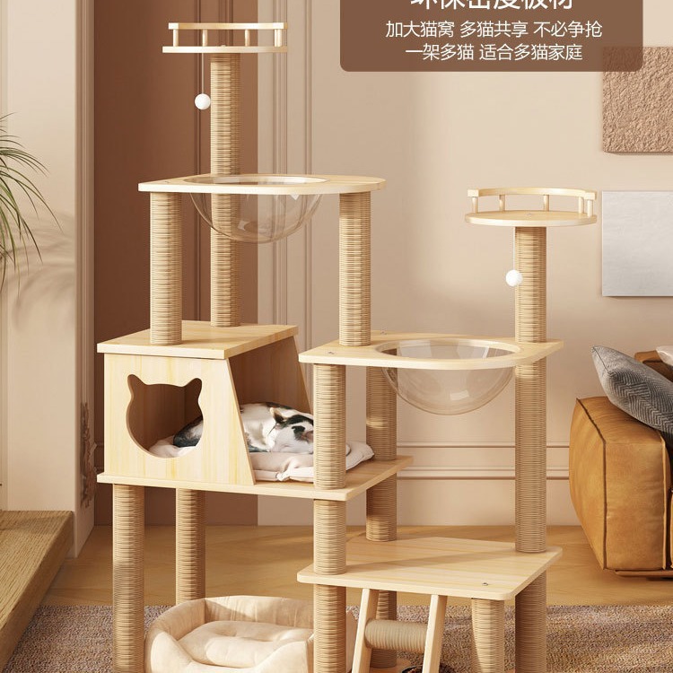 공장 고급 단단한 나무 고양이 등반 프레임 고양이 둥지 고양이 나무 통합 고양이 잡기 열 하늘 기둥 공간 캡슐 고양이 용품 도매스토어 가기