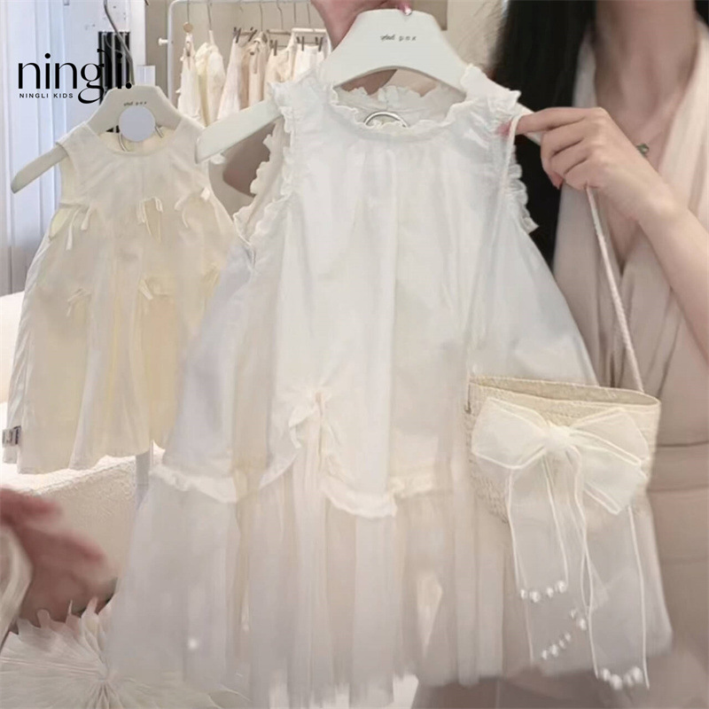 라임 아동복 소녀 원피스 여름 하이 엔드 느낌 새로운 어린이 흰색 슈퍼 요정 프랑스 조끼 원피스 공주 원피스스토어 가기