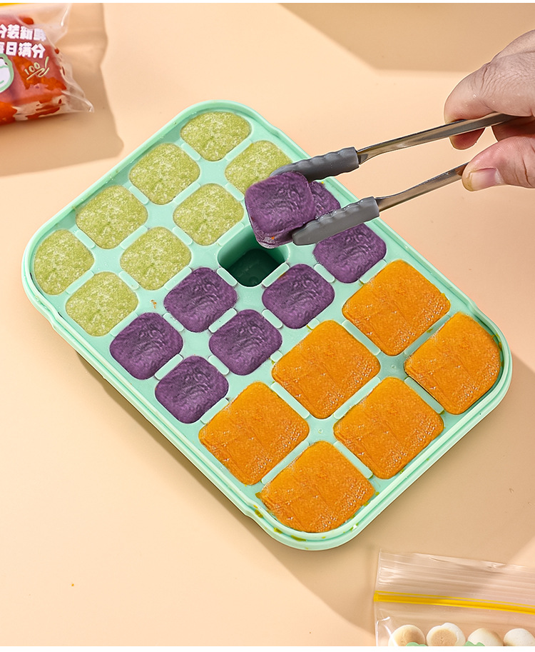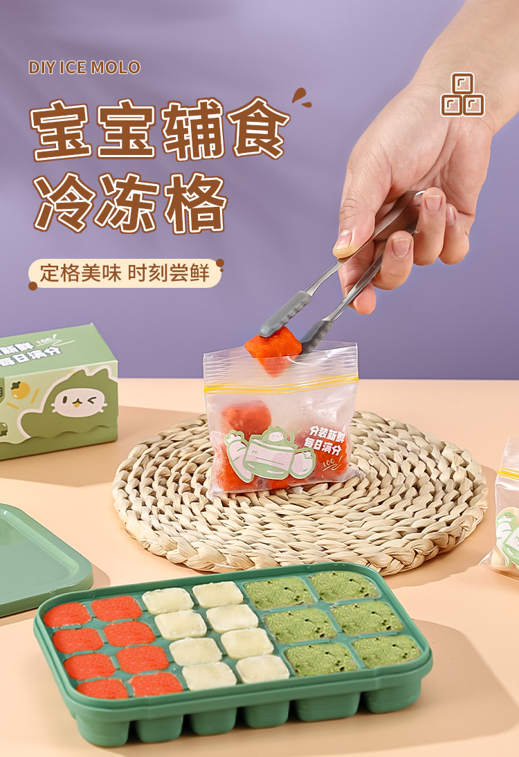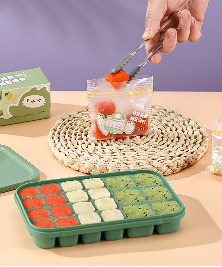 아이스 큐브 아기 보완 식품 냉동 큐브 아기 고기 페이스트 보완 식품 상자 금형 포장 실리콘 저장 상자 도구 냉동 수프 상자