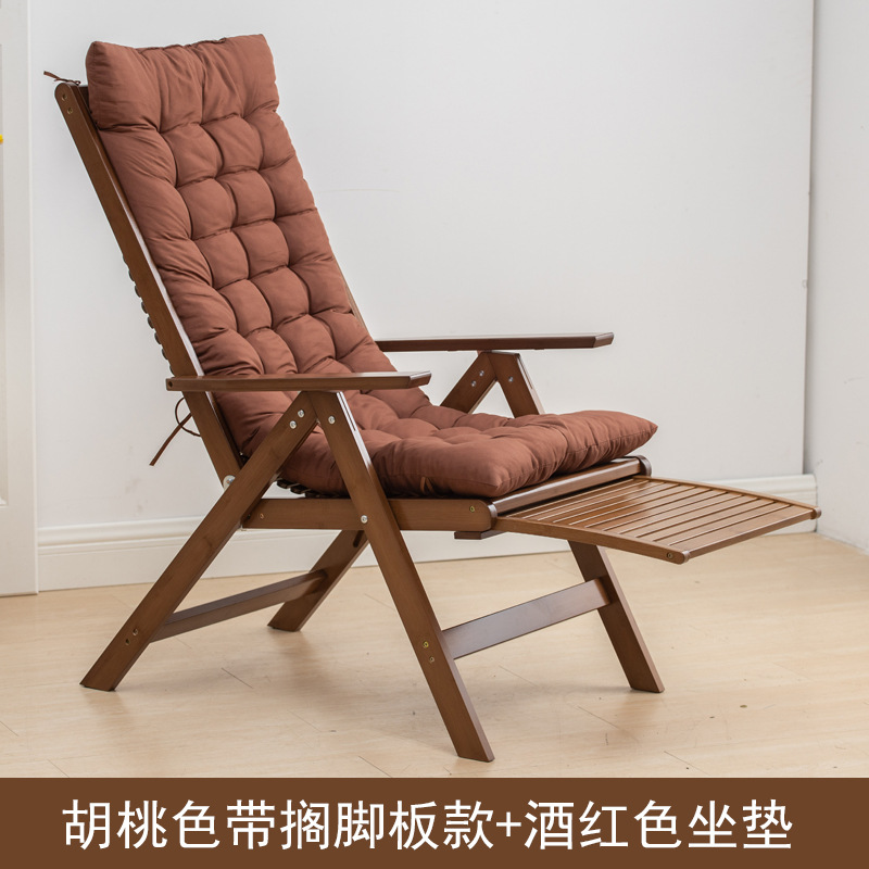 • [조정 가능한] 발판 버건디 쿠션이있는 호두 컬러 접이식 안락