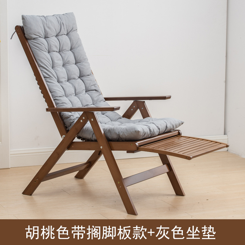 • [조정 가능한] 발판 회색 쿠션이있는 호두 컬러 접이식 안락