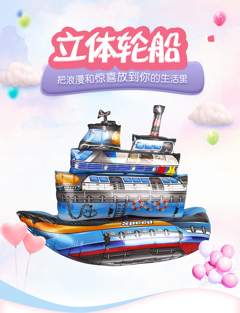 알루미늄 필름 3D 입체 선박 유람선 장식 풍선 배열 생일 파티 만화 패턴 장면 풍선스토어 가기