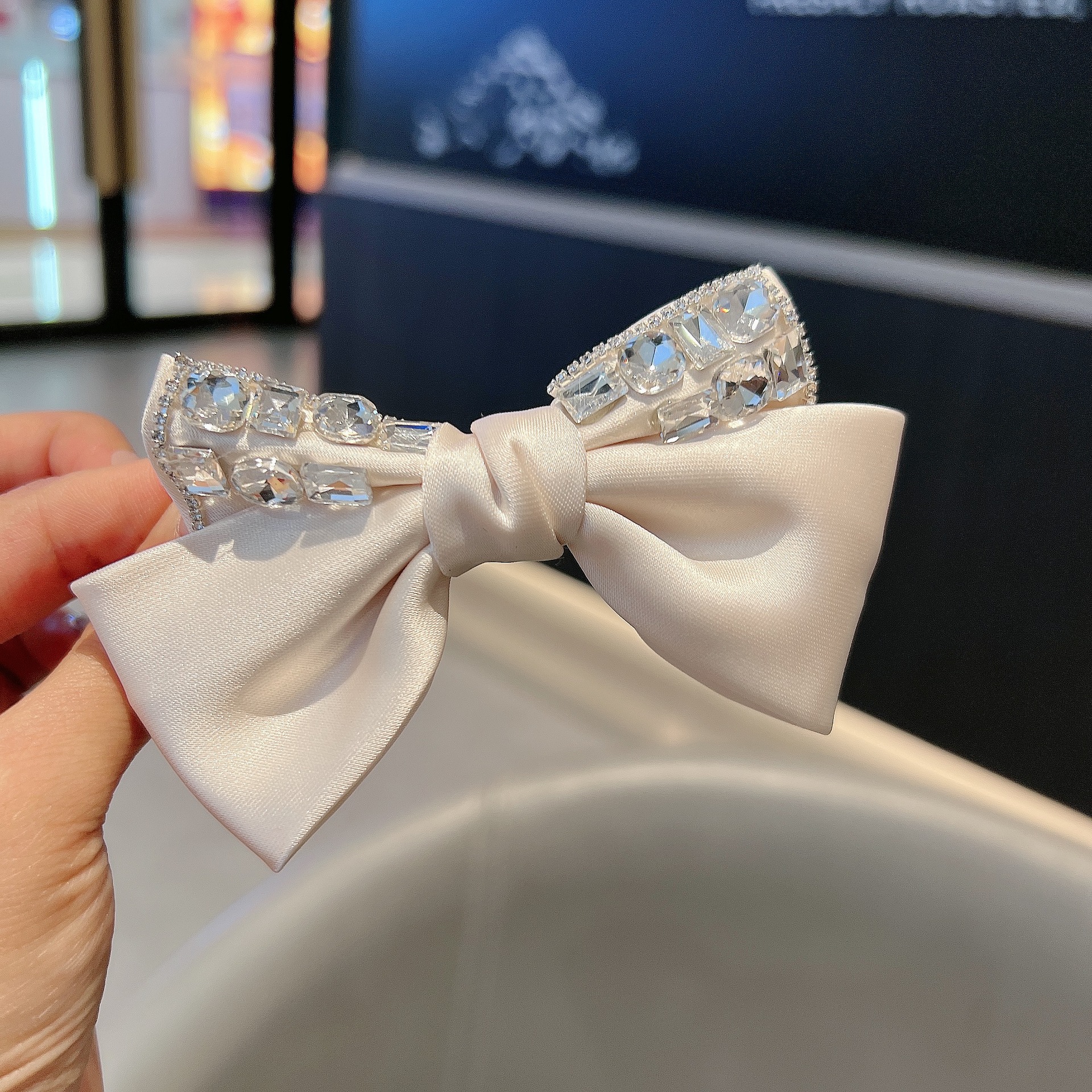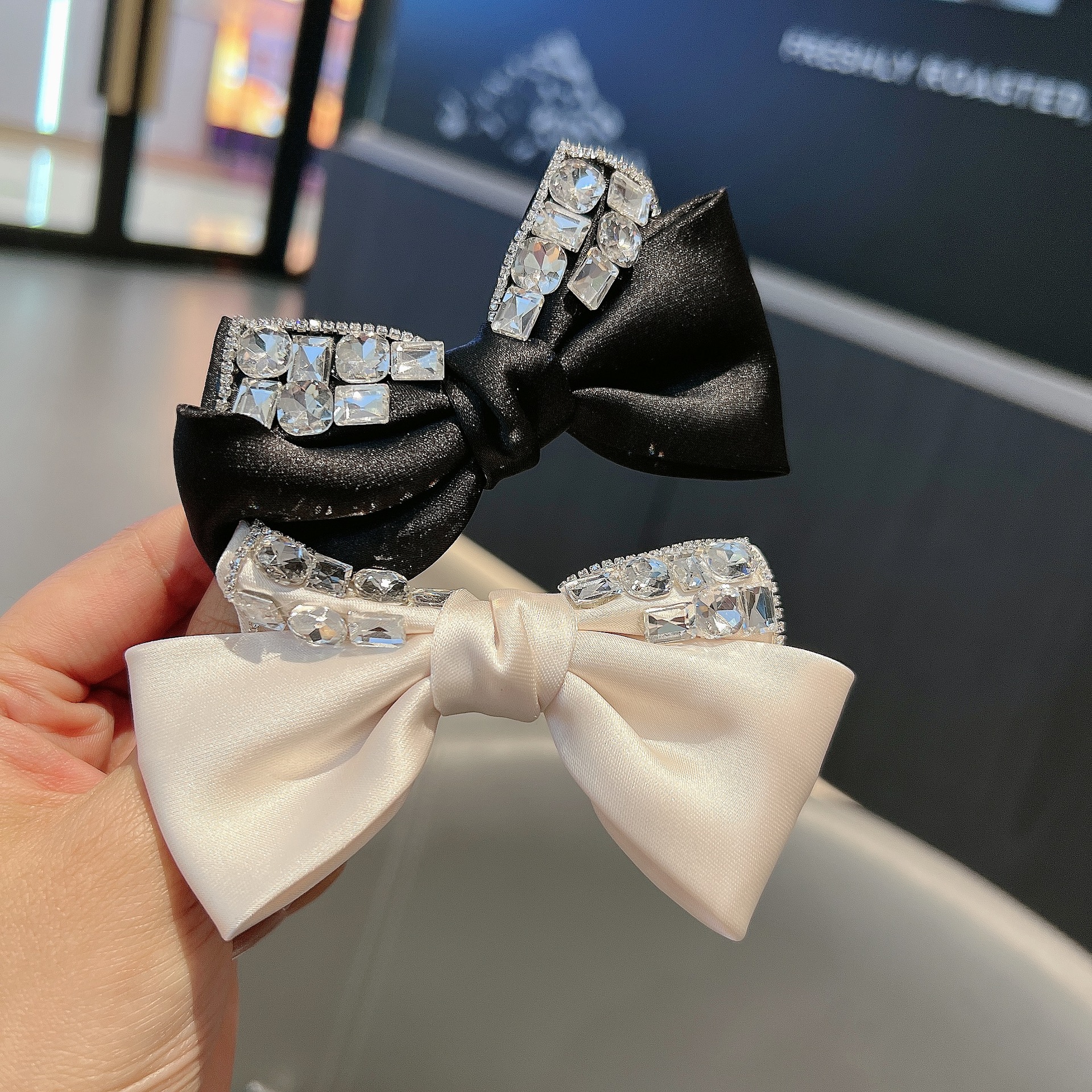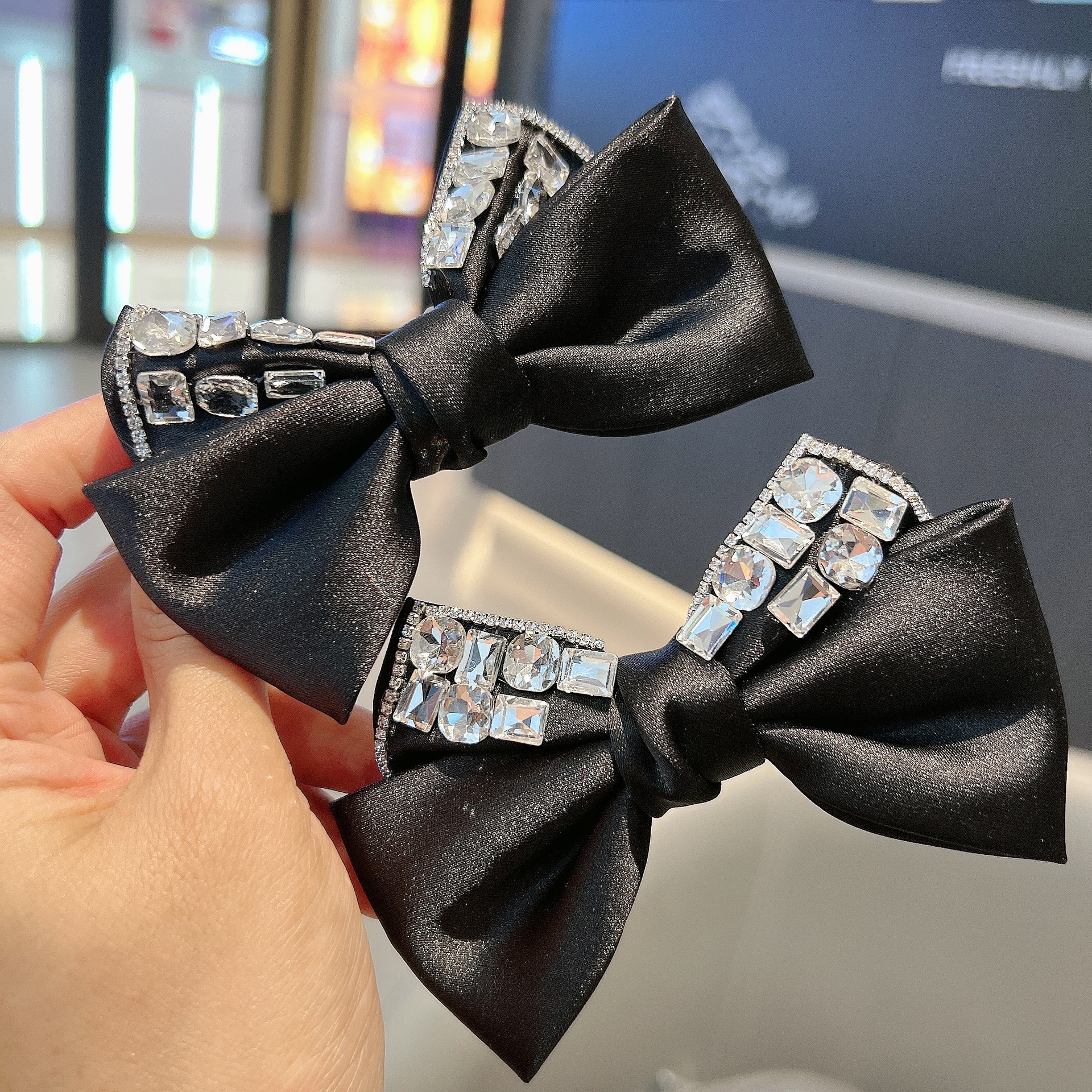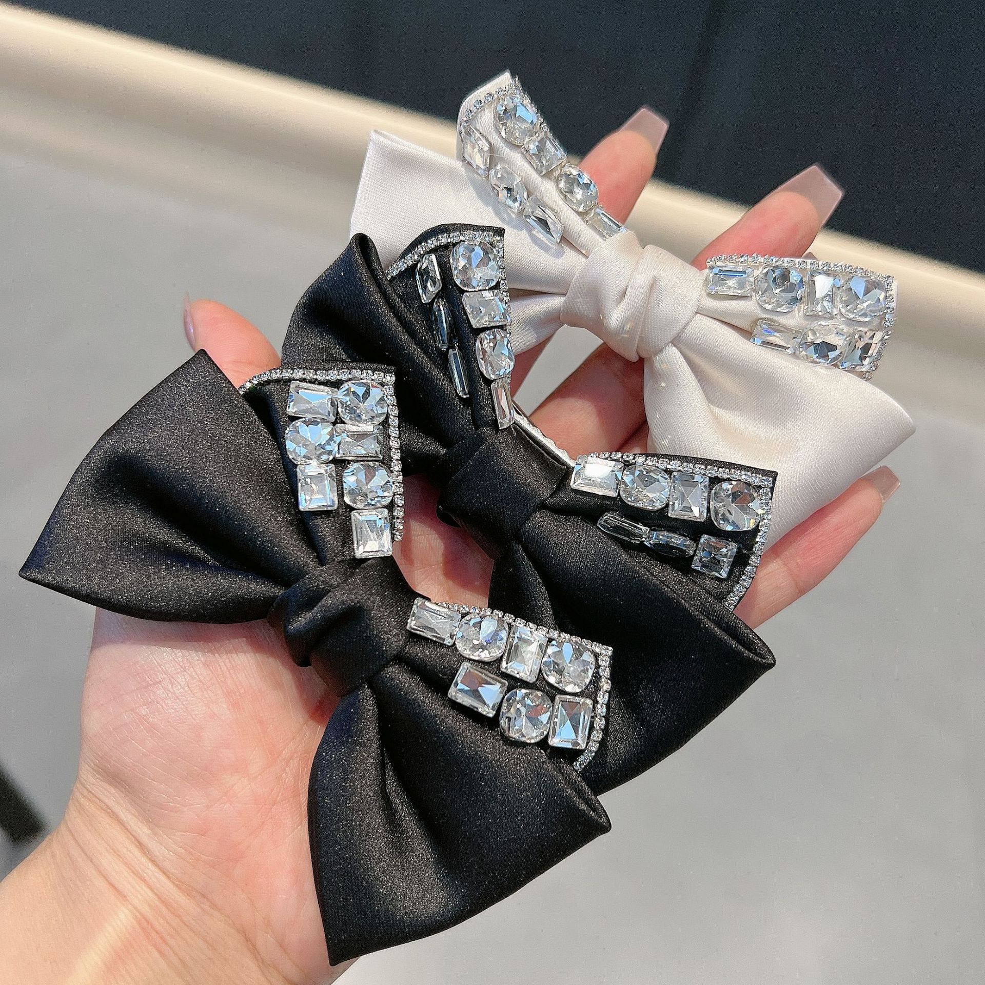 프랑스 스타일 레트로 다이아몬드가 박힌 틈새 활 헤어핀 하이 엔드 우아한 뱅 클립 사이드 헤어핀 라이트 럭셔리 사이드 클립 여성용 클립스토어 가기