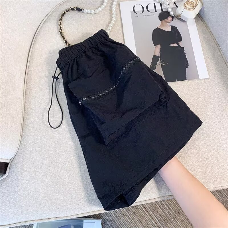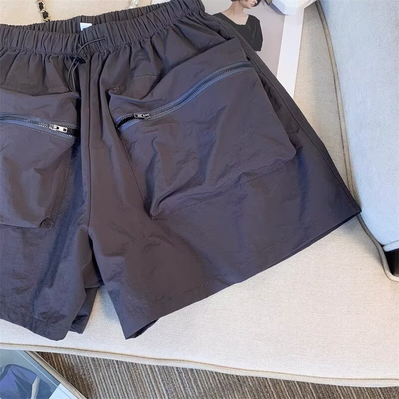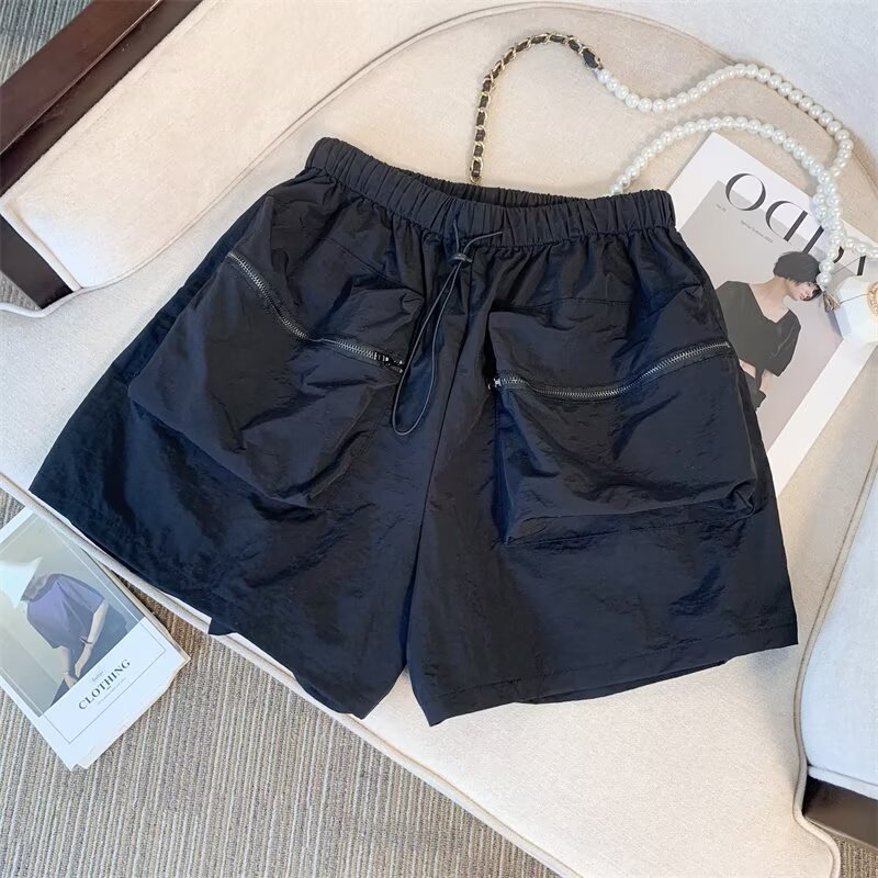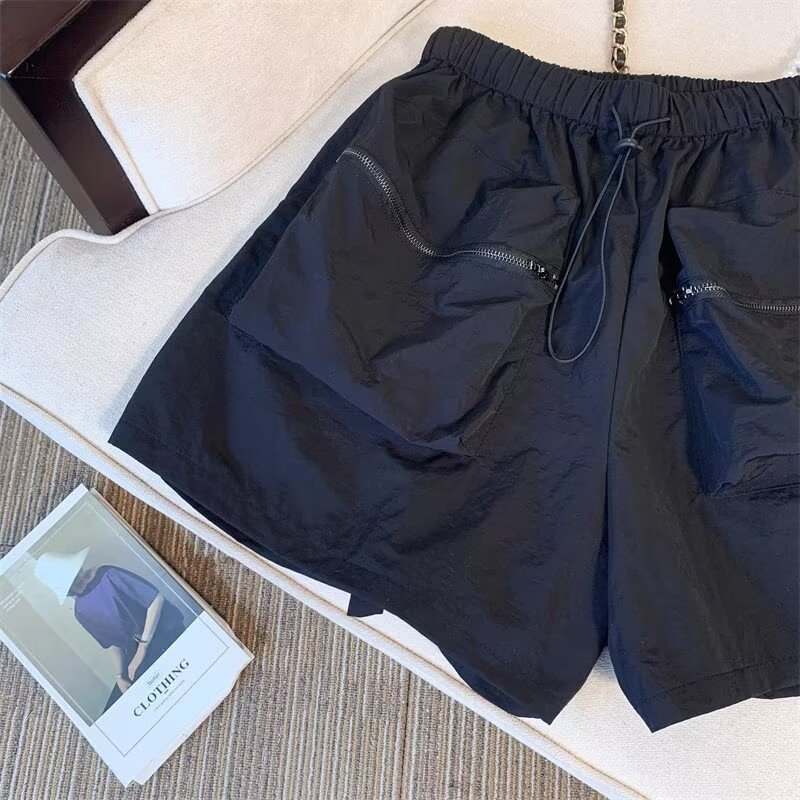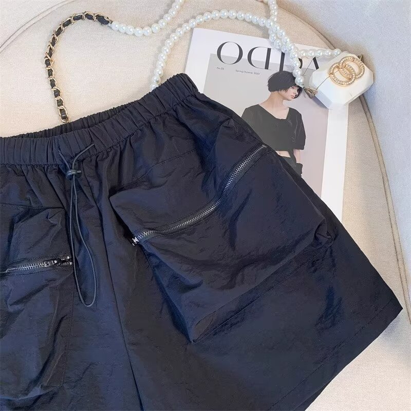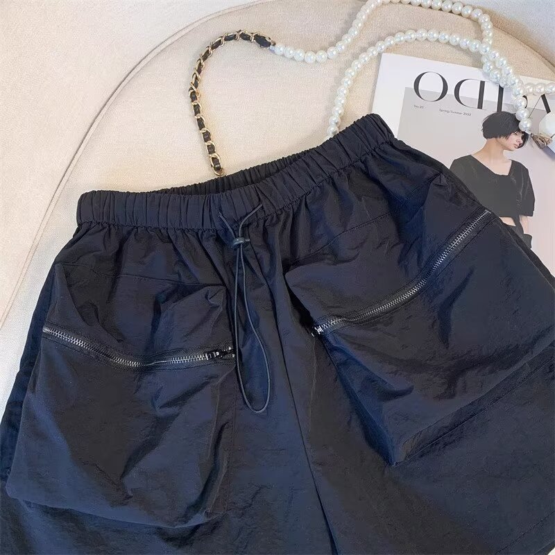黑色工装短裤女夏季薄款小个子外穿宽松a字速干运动裤美式阔腿裤