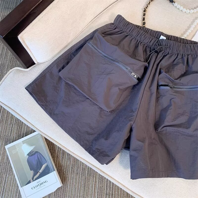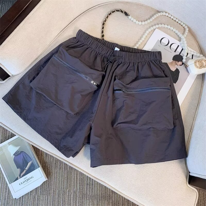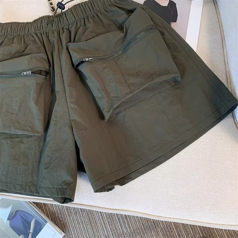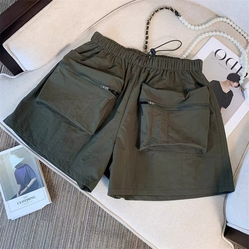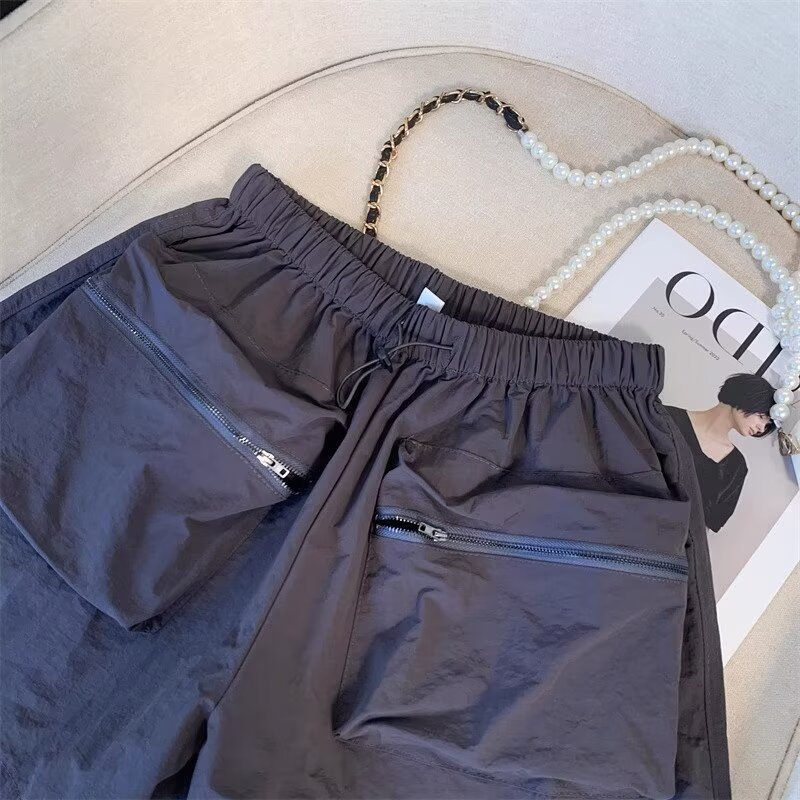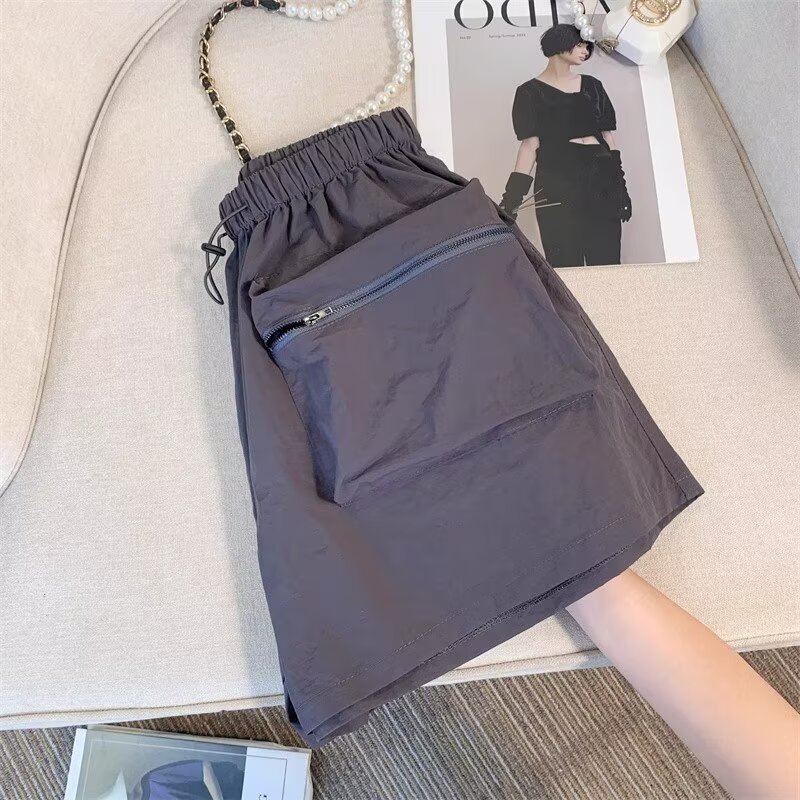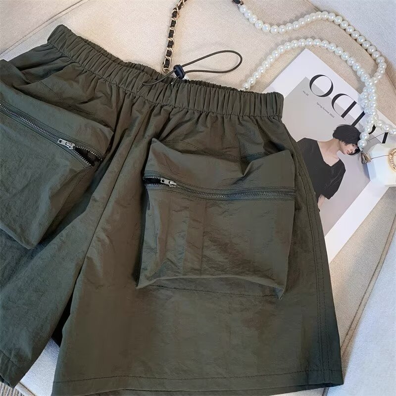 黑色工装短裤女夏季薄款小个子外穿宽松a字速干运动裤美式阔腿裤