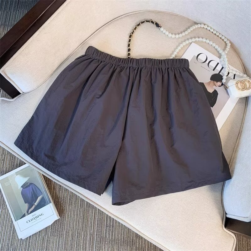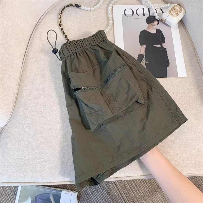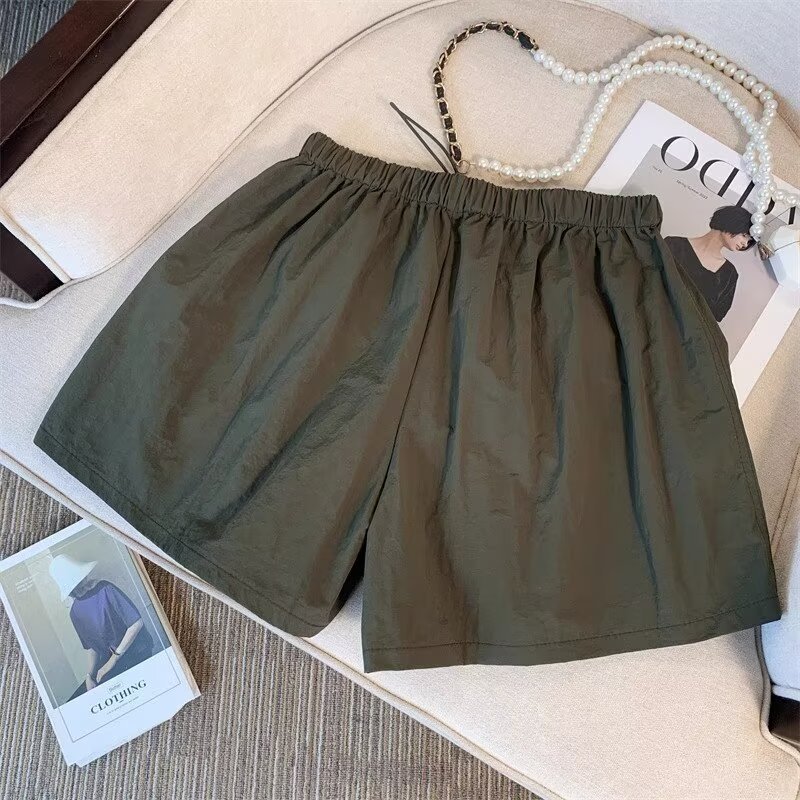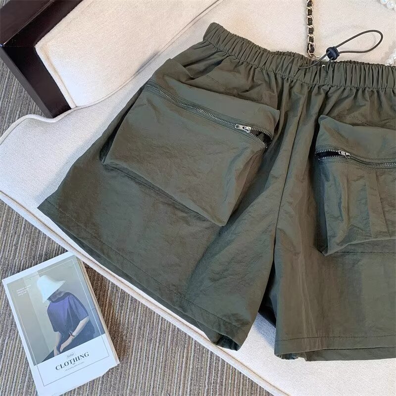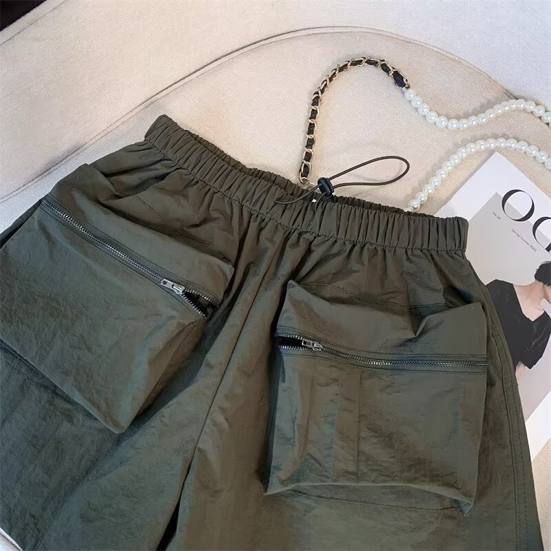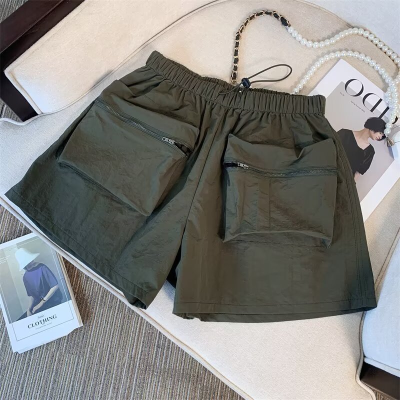 여름 여성용 블랙 카고 반바지, 얇고 작은 사이즈, 루즈한 A라인 속건 스포츠 팬츠, 아메리칸 와이드 팬츠스토어 가기