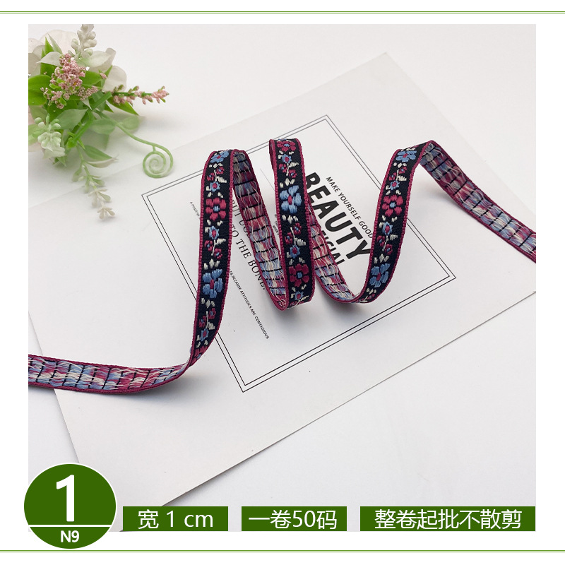 공장 컴퓨터 자카드 리본 민족 스타일 1cm 의류 레이스 액세서리 수하물 보석 장식 스트립 재고 배치스토어 가기