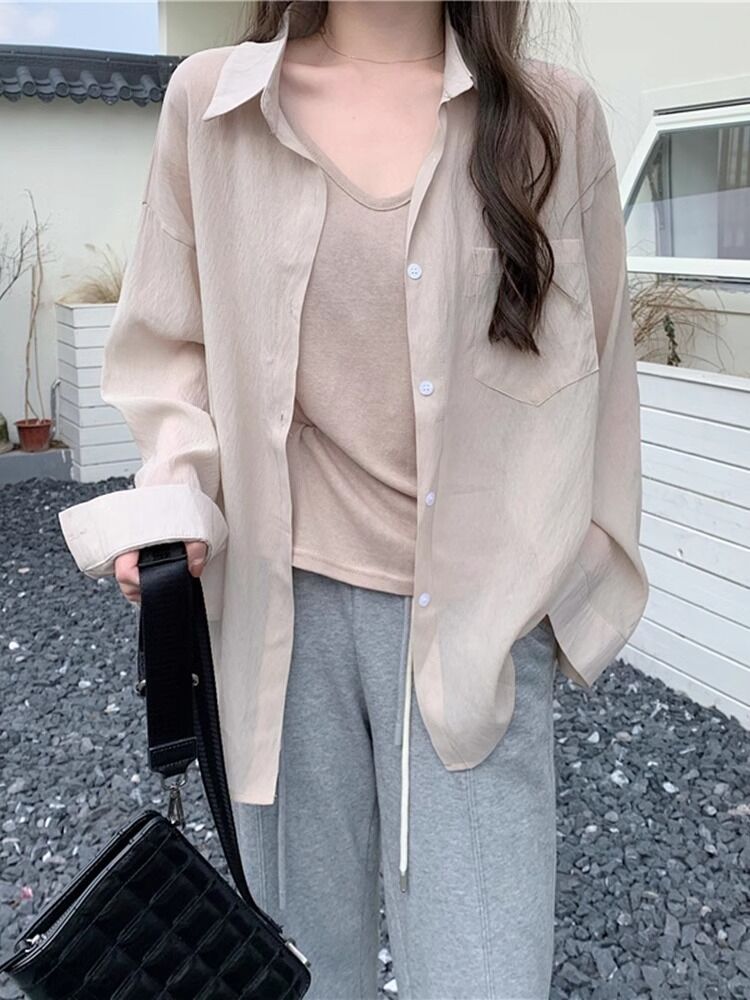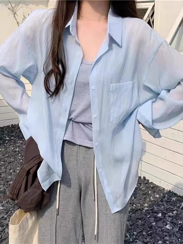 프랑스 아이스 실크 선스크린 셔츠 여성용 여름 얇은 셔츠 고급 주름 방지 긴 소매 선 스크린 재킷