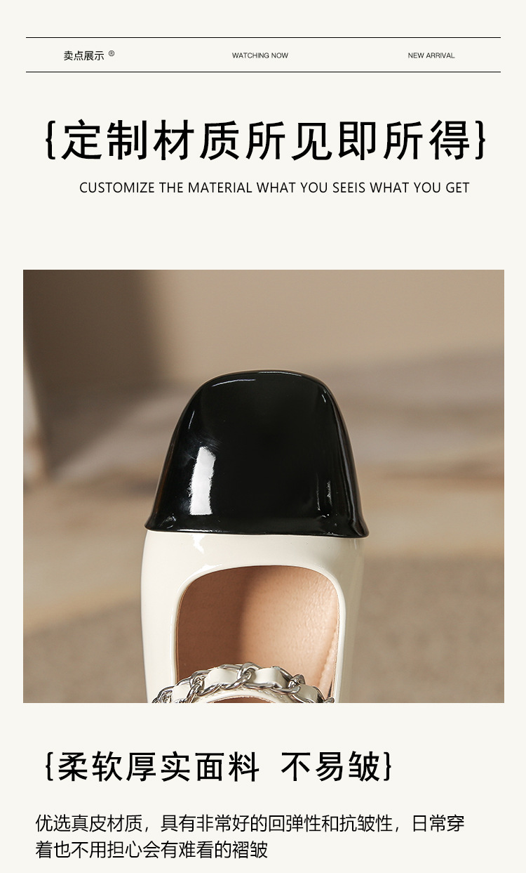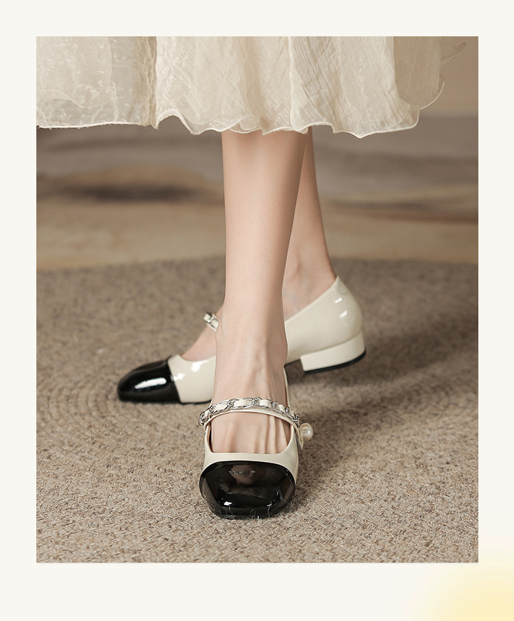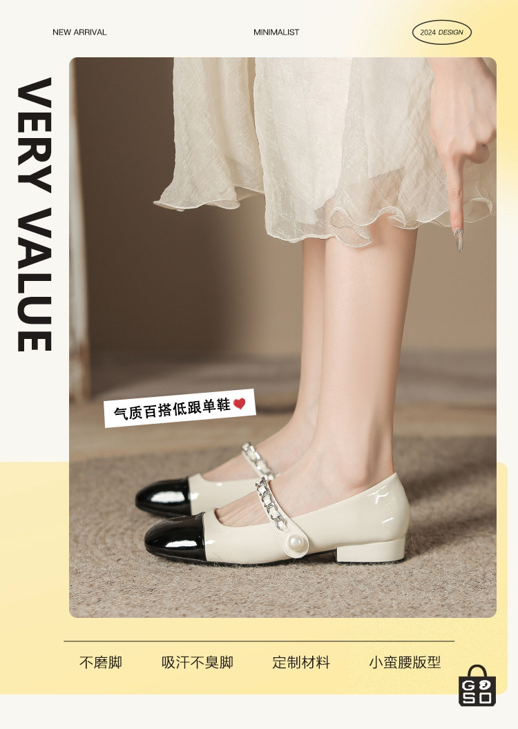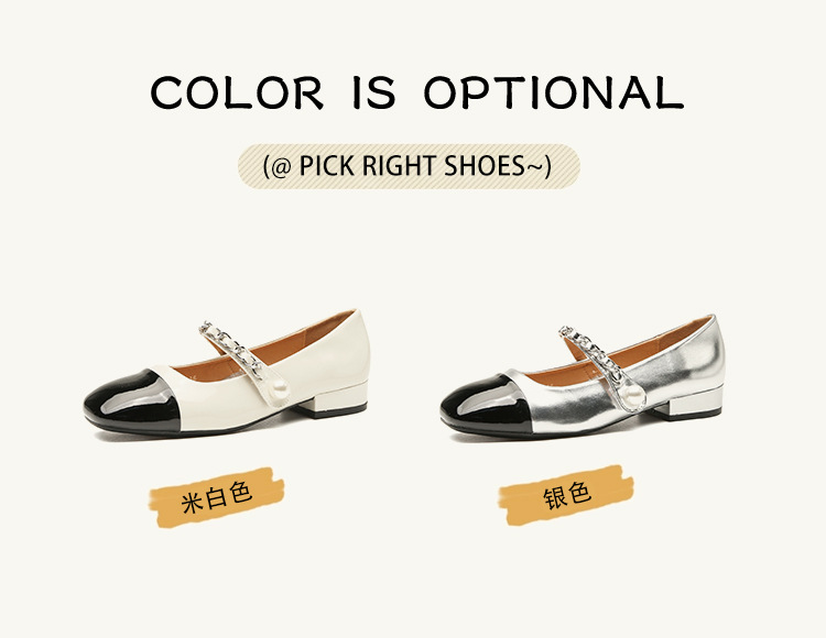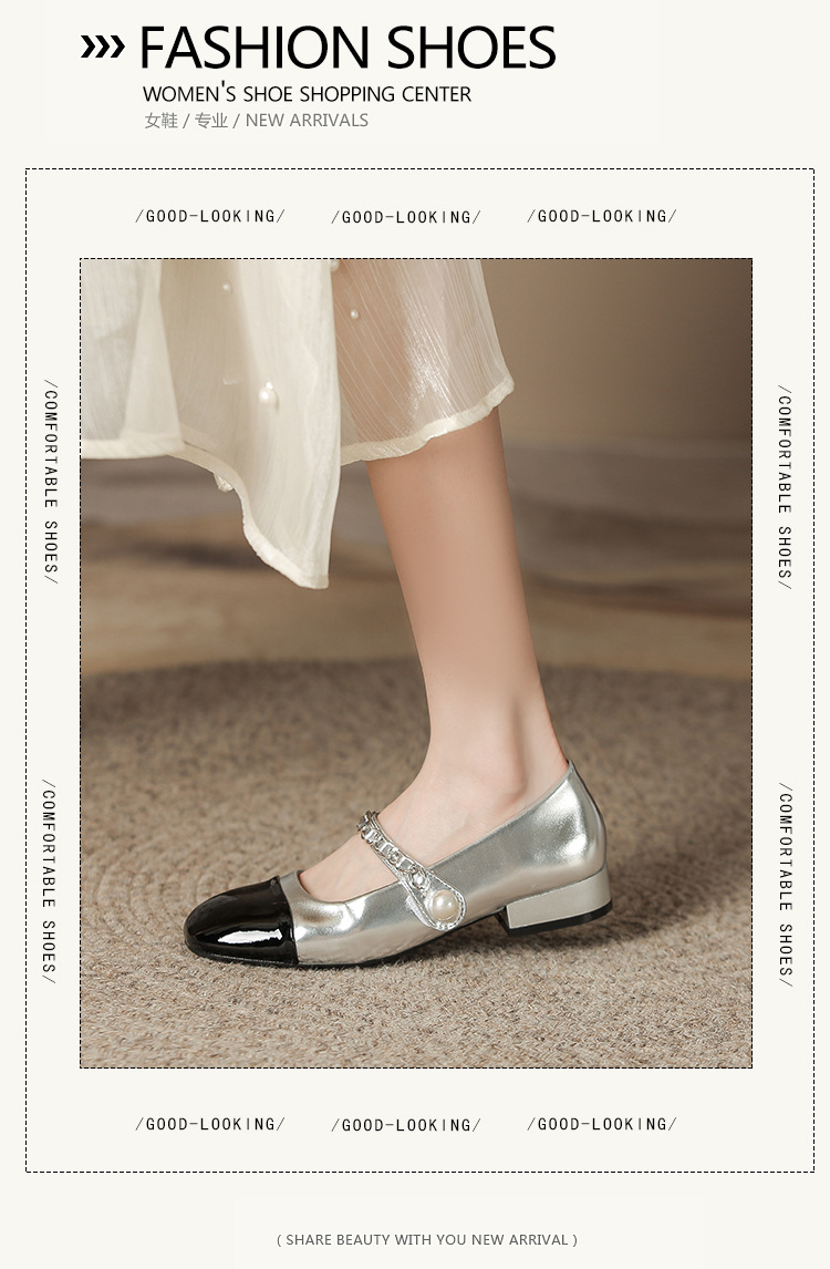 2024 새로운 밝은 얼굴 사각형 발가락 작은 가죽 신발 여성 실버 두꺼운 뒤꿈치 신발 프랑스 색 매칭 진주 메리 제인 신발스토어 가기