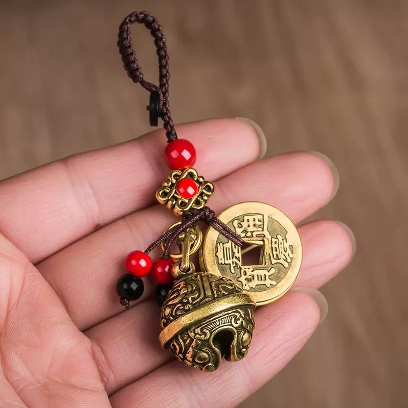 인터넷 축하 황동 간단한 벨 자동차 키 체인 간단한 펜던트 골동품 수제 고급 안전 교수형 장식품