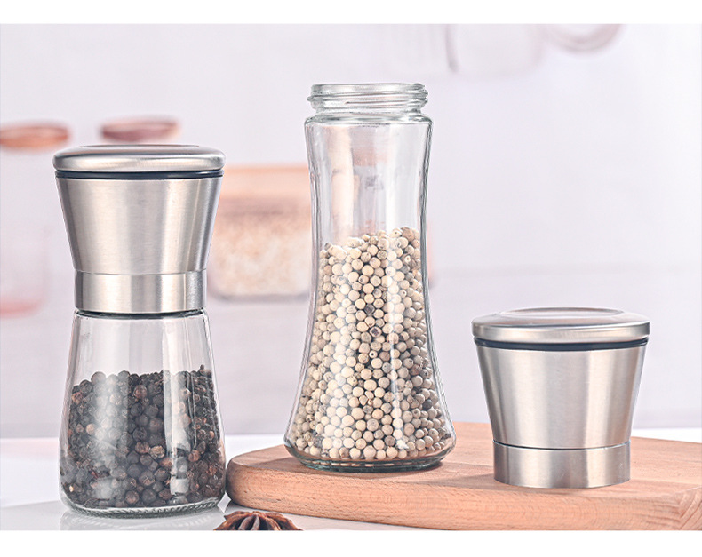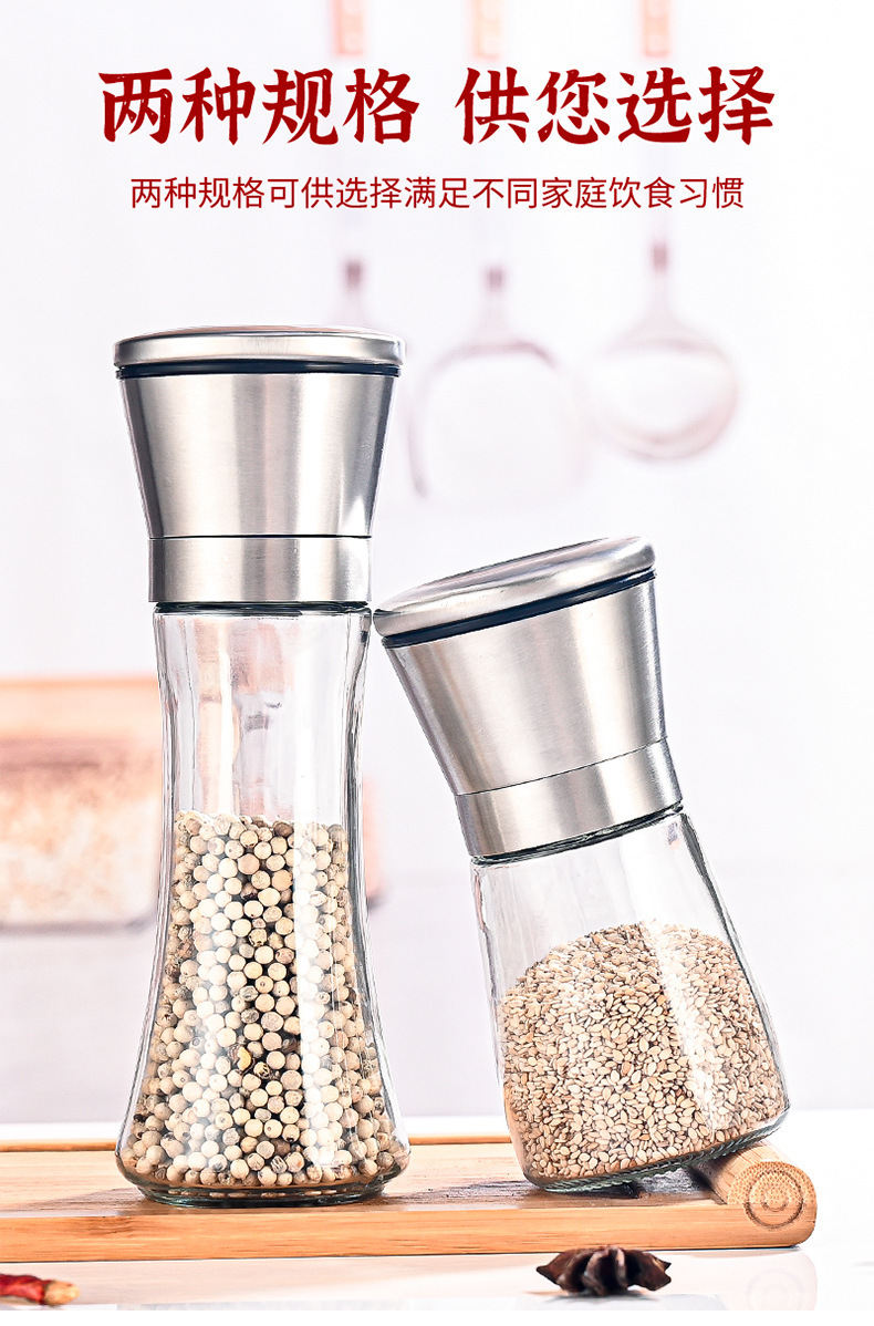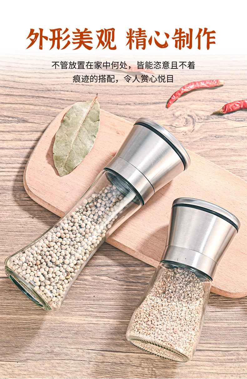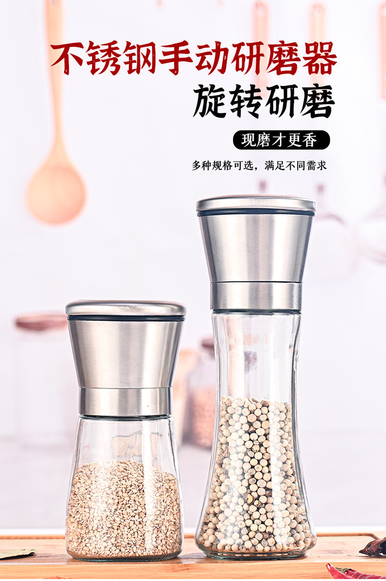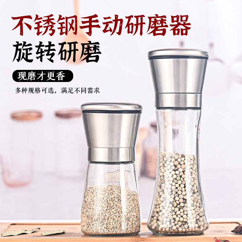 스테인레스 스틸 페퍼 그라인더 가정용 수동 유리 갓 갈은 검은 후추 가루 조미료 병은 연삭 병과 함께 제공됩니다.스토어 가기