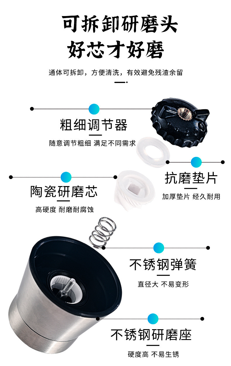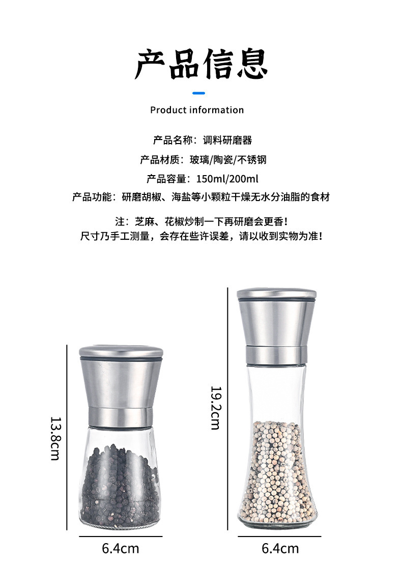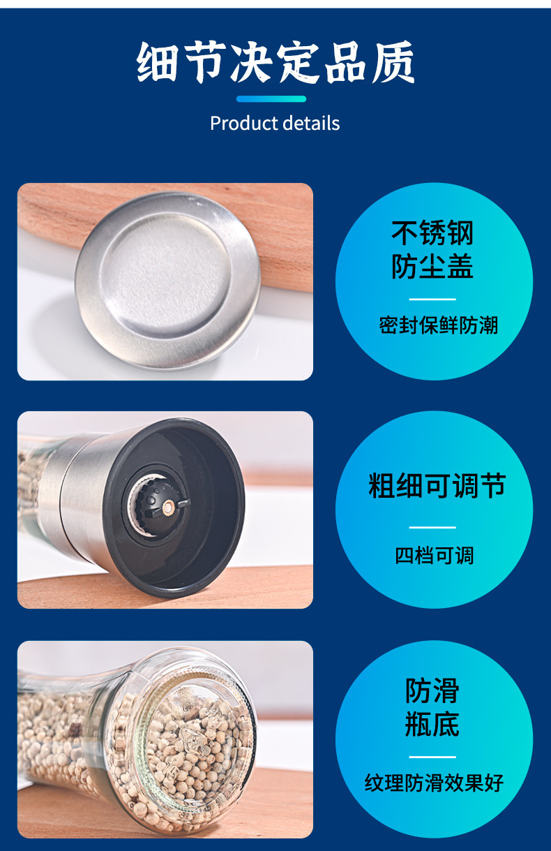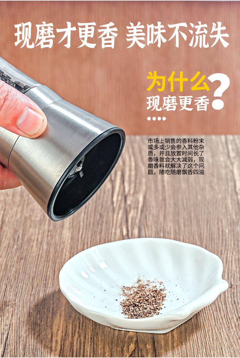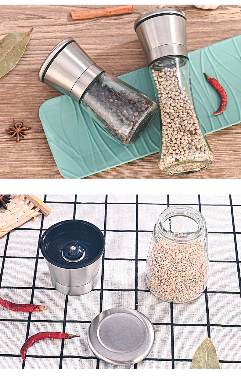 스테인레스 스틸 페퍼 그라인더 가정용 수동 유리 갓 갈은 검은 후추 가루 조미료 병은 연삭 병과 함께 제공됩니다.스토어 가기