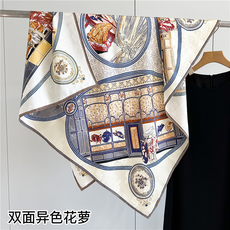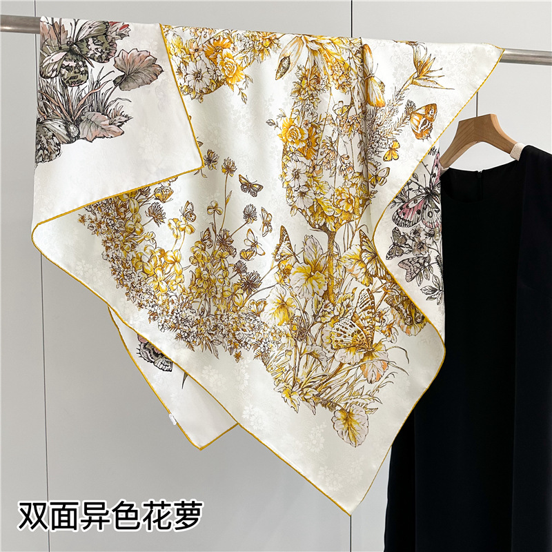 무거운 실크 스카프 여성의 봄 새로운 양면 이색 꽃 110cm 대형 광장 뽕나무 실크 스카프 목도리스토어 가기