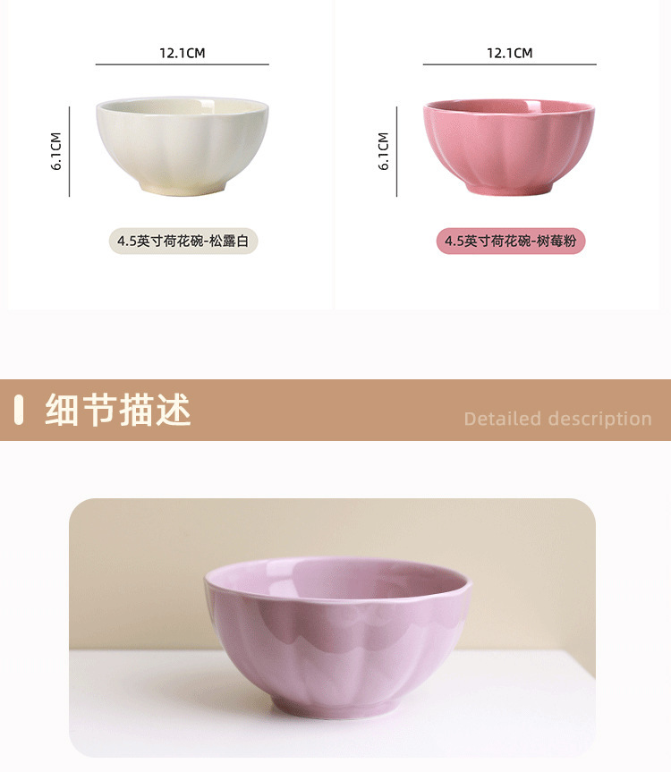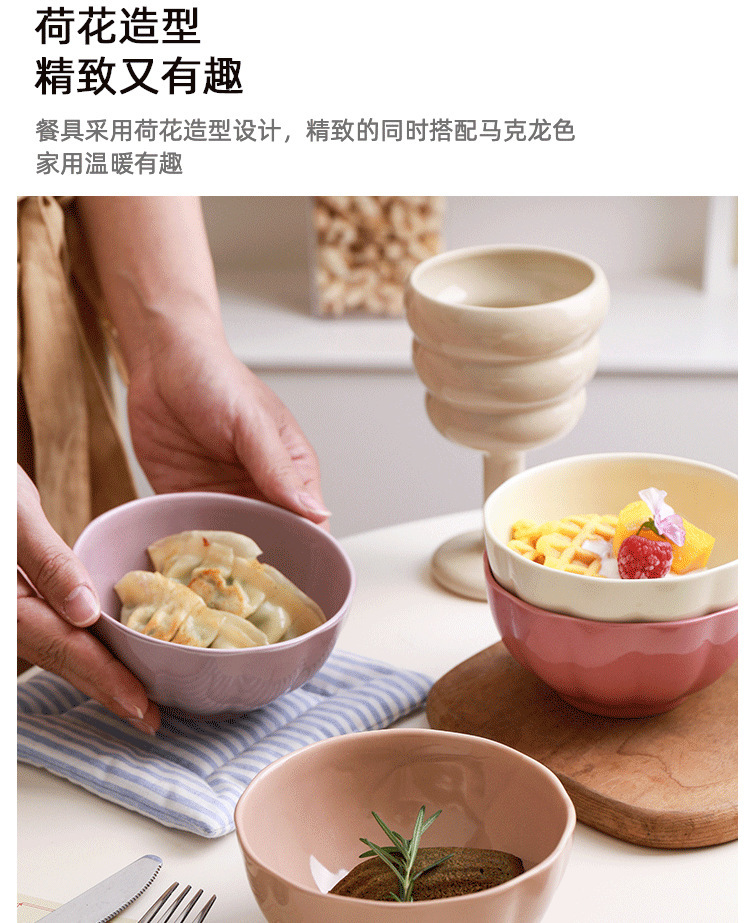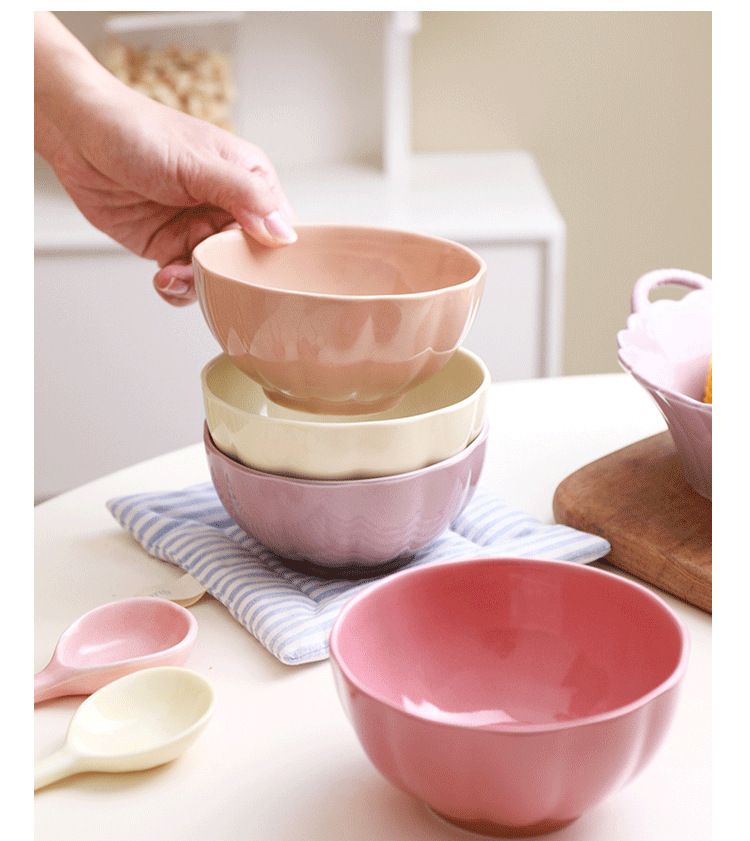 Ins 스타일 높은 색상 값 귀여운 마카롱 캔디 컬러 가정용 세라믹 식기 원색 연꽃 그릇