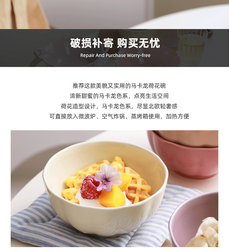 Ins 스타일 높은 색상 값 귀여운 마카롱 캔디 컬러 가정용 세라믹 식기 원색 연꽃 그릇스토어 가기