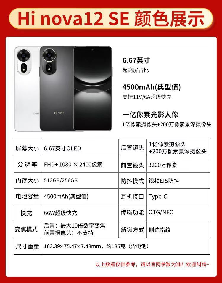 화웨이 지스케이트 Hi Nova12 SE 풀 네트워크 5G 스마트폰 1억 픽셀 카메라 게임 전국 보증스토어 가기